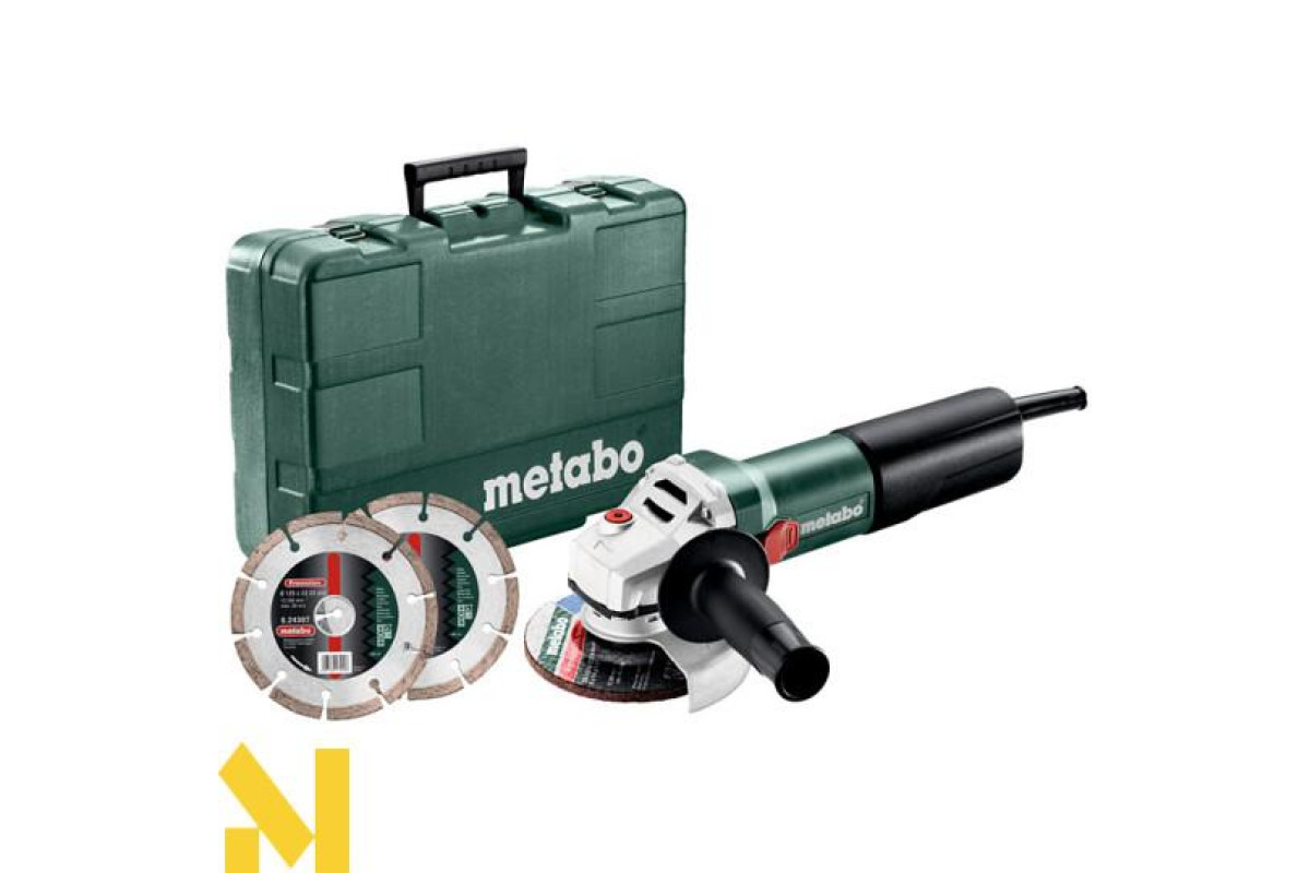 Болгарка Metabo WQ 1100-125 Set в розширеній комплектації, в яку на відміну від стандартної, входить два алмазних диска і пластиковий кейс.