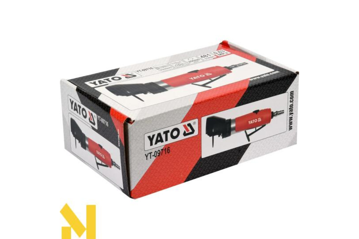 Легкий та зручний пневматичний різак YATO YT-09716 живиться від струменя стиснутого повітря під тиском.