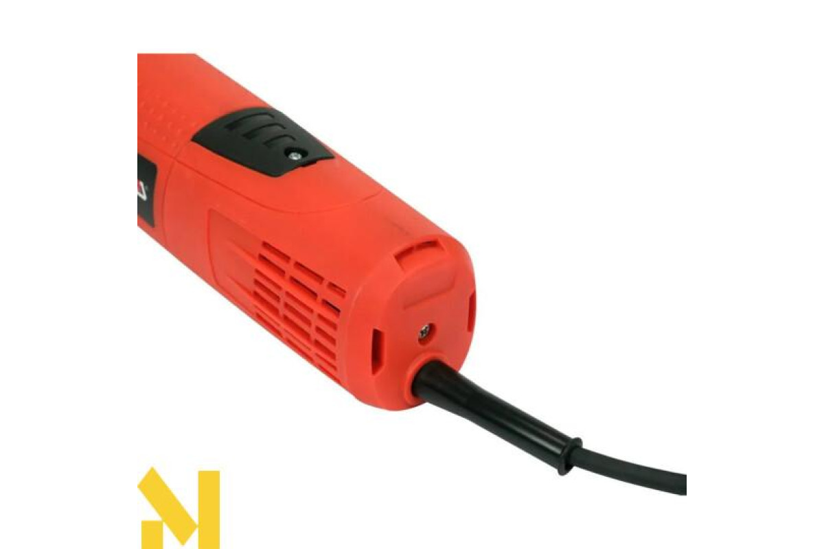 Пристрій оснащений посиленою шестернею і системою плавного запуску, що забезпечує більш тривалий термін служби двигуна. Потужний двигун з мідною обмоткою вкритий смолою для захисту від пошкоджень. Трипозиційна допоміжна рукоятка прикручується з боків або зверху до кришки редуктора. Комфортна робота болгарки забезпечується гумовим кабелем довжиною 3 метри. Бічний перемикач зручний, довговічний і дає змогу легко вмикати кавомолку навіть у робочих рукавичках. Зовнішній діаметр корпусу невеликий, що забезпечує безпечне і надійне захоплення і напрямок диска вздовж лінії різання. Система швидкої заміни щіток дає змогу здійснювати заміну без розбирання всього пристрою.