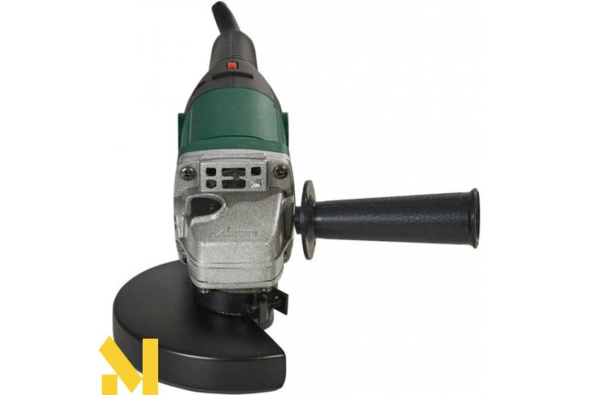 Комплектація | Кутова шліфувальна машина; Додаткова ручка; Затискний ключ; Захисний кожух; Вугільні щітки; Посібник з експлуатації. |