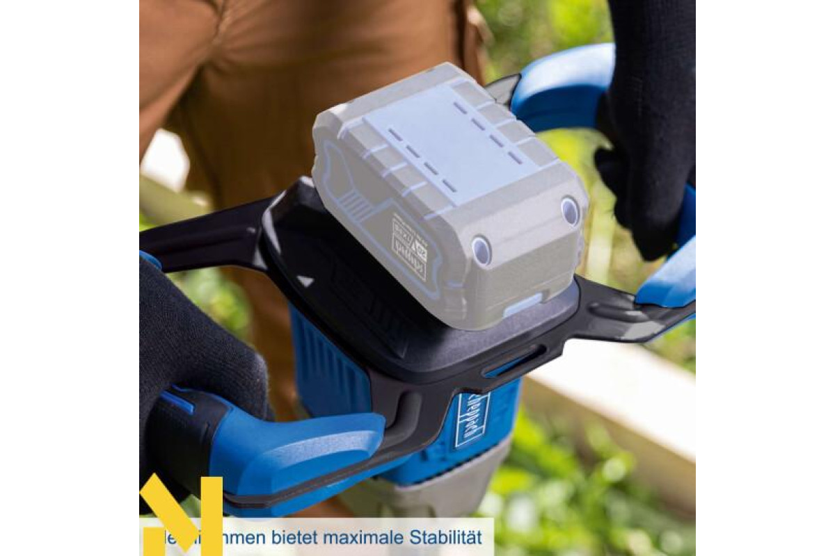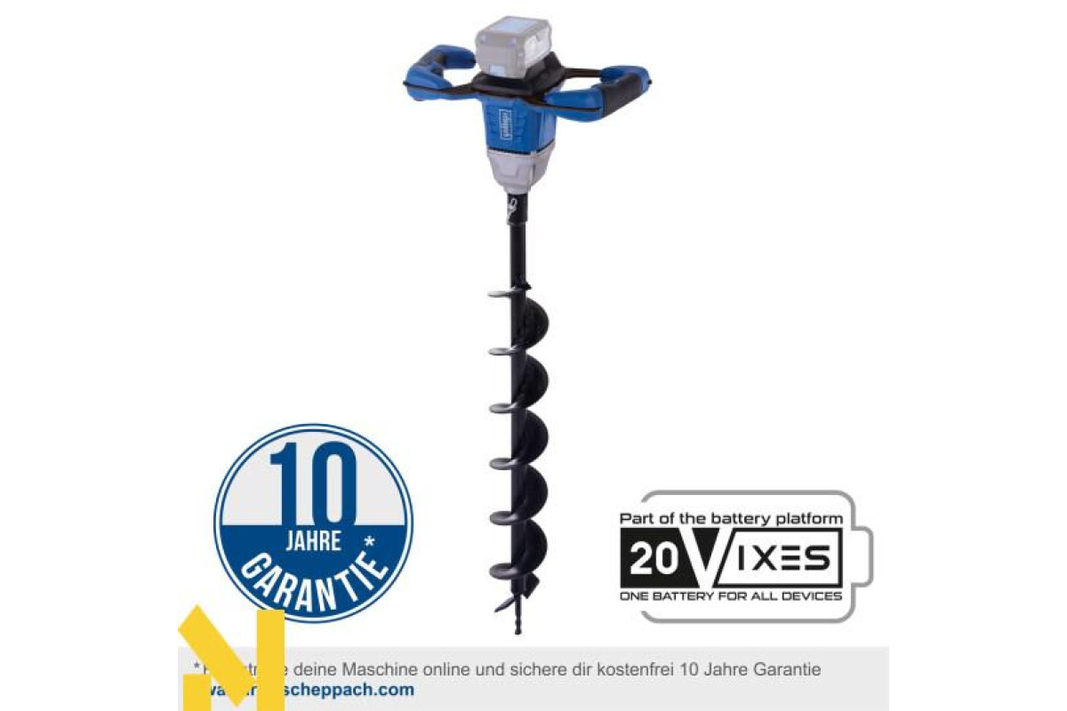 Бездротова робота з 20-вольтовою серією Scheppach IXES – усі акумулятори та зарядні пристрої системної серії можна поєднувати з бездротовим земляним буром