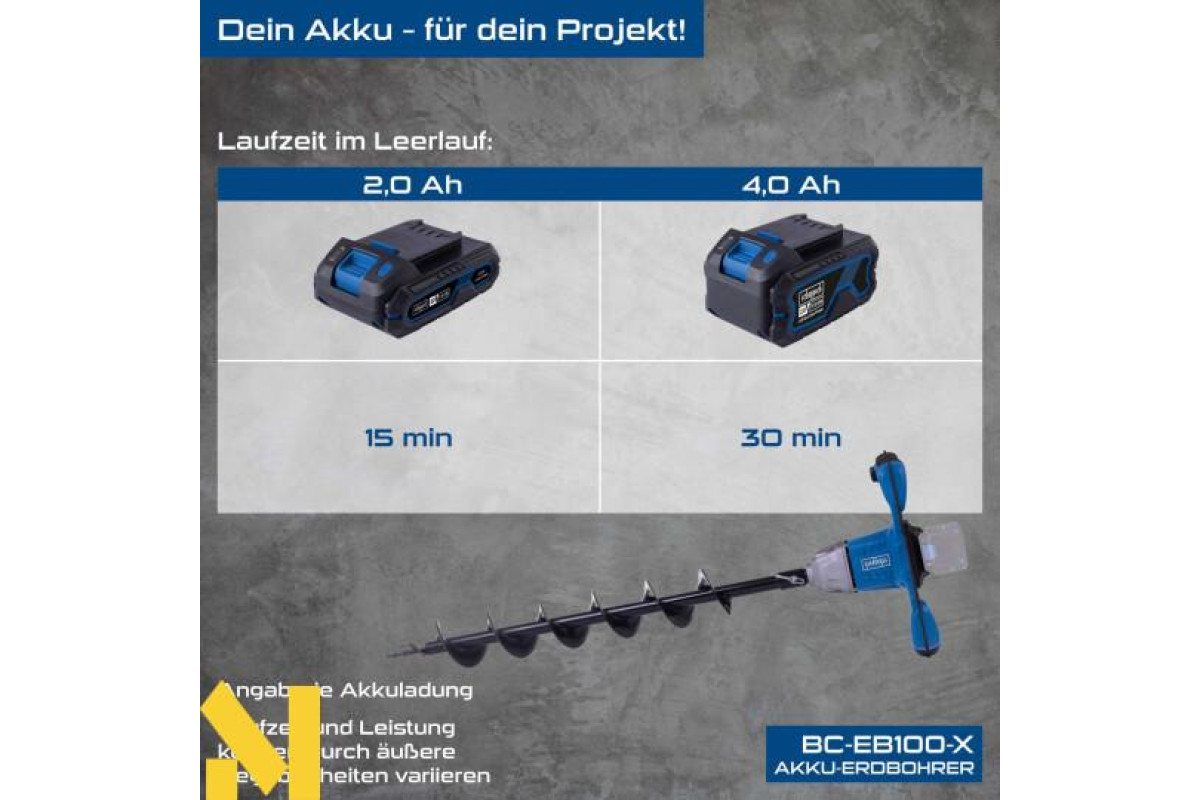 Акумуляторний земляний бур Scheppach BC-EB100-X – це практичний інструмент для копання ям під стовпи парканів, точкові фундаменти або розсаду рослин. Земляний бур має три режими роботи: еко, потужний режим та реверс. Заміна свердла відбувається швидко та без інструментів. BC-EB100-X оснащений потужним безщітковим двигуном. Цей безщітковий двигун забезпечує особливо високу ефективність, довший час роботи, тривалий термін служби та знижений знос. Як частина серії Scheppach IXES 20 вольт, усі акумулятори та зарядні пристрої системи можна комбінувати з земляним буром. Акумулятор та зарядний пристрій продаються окремо.