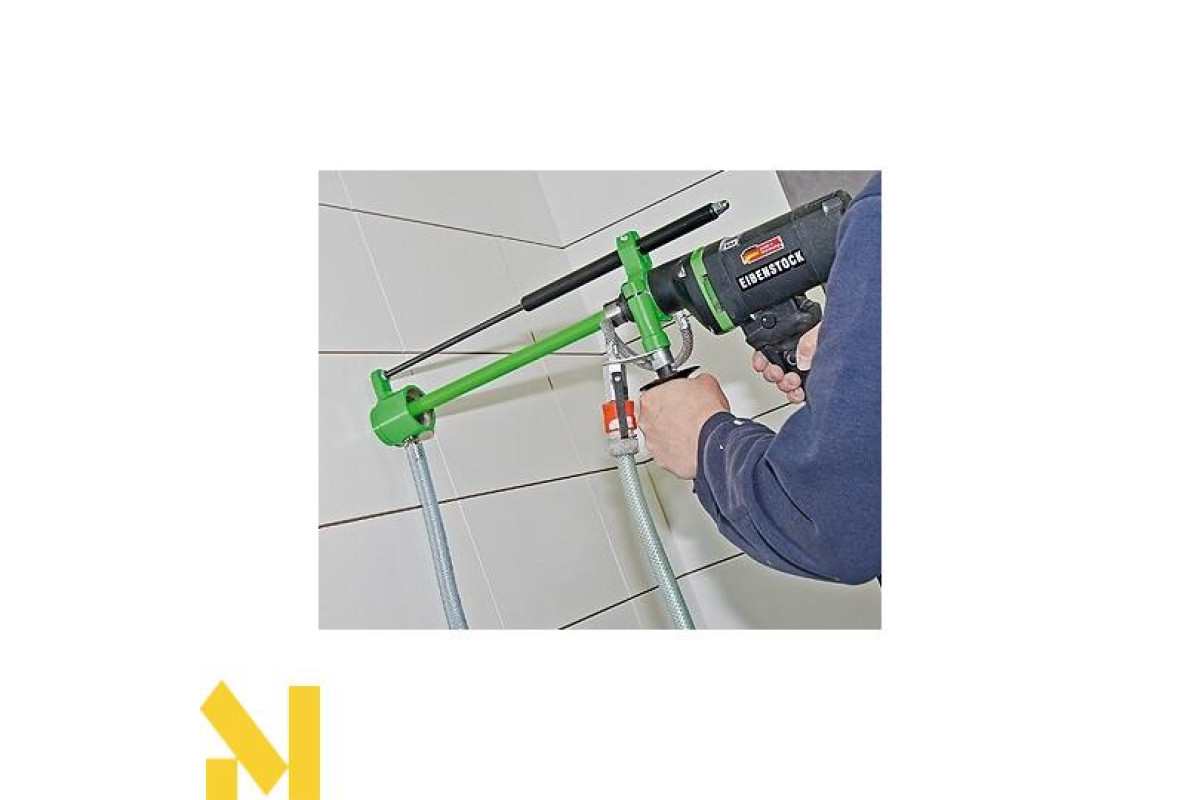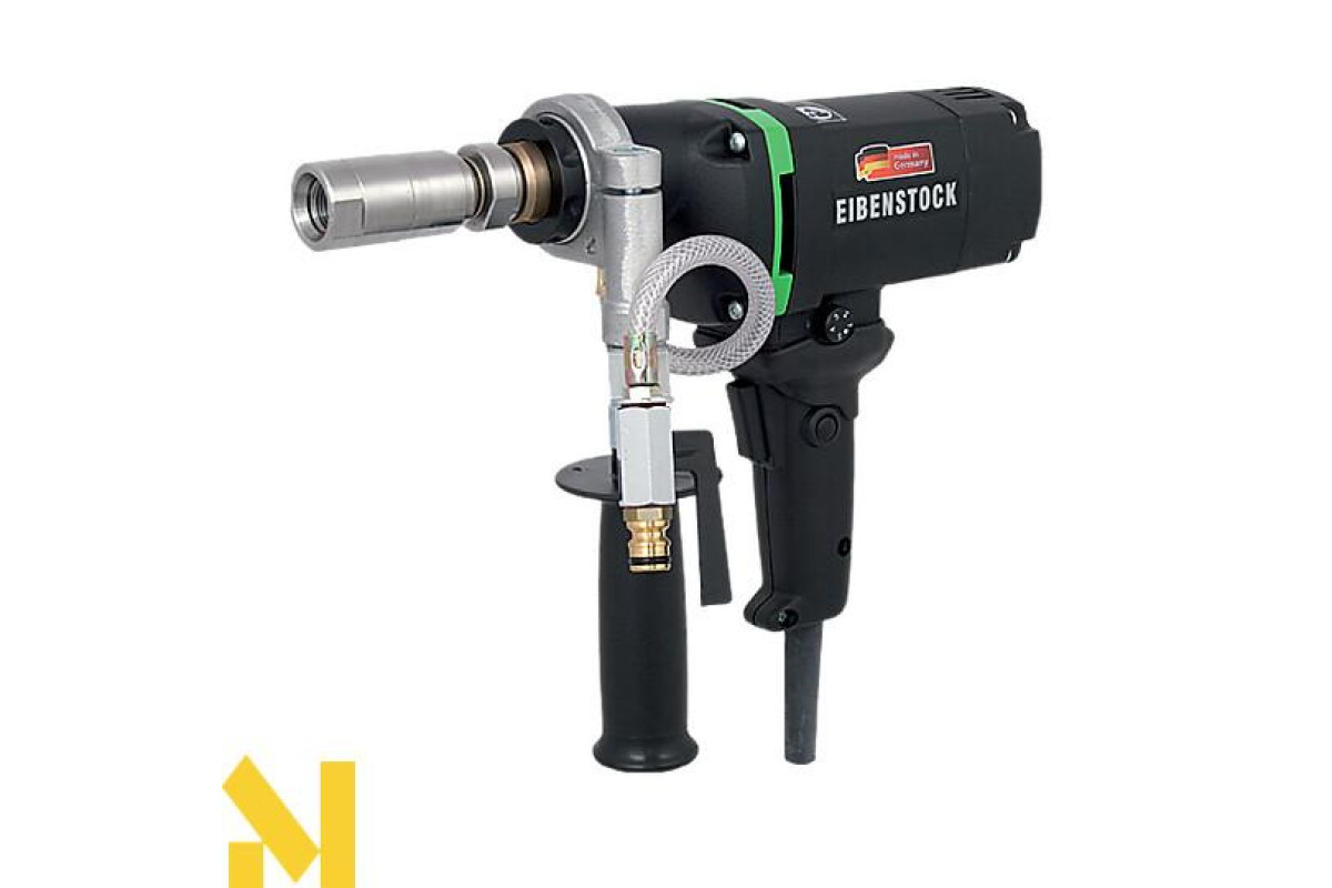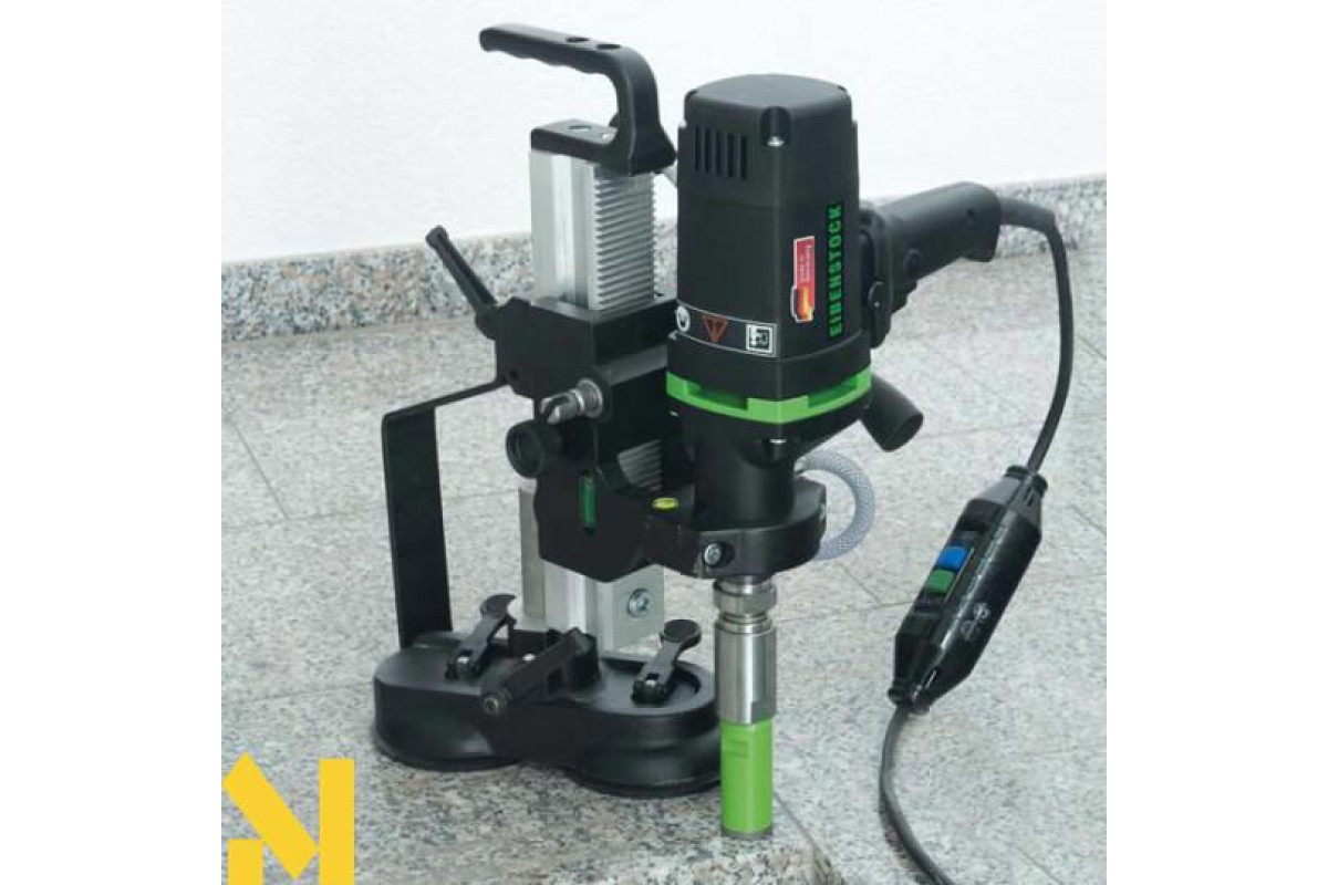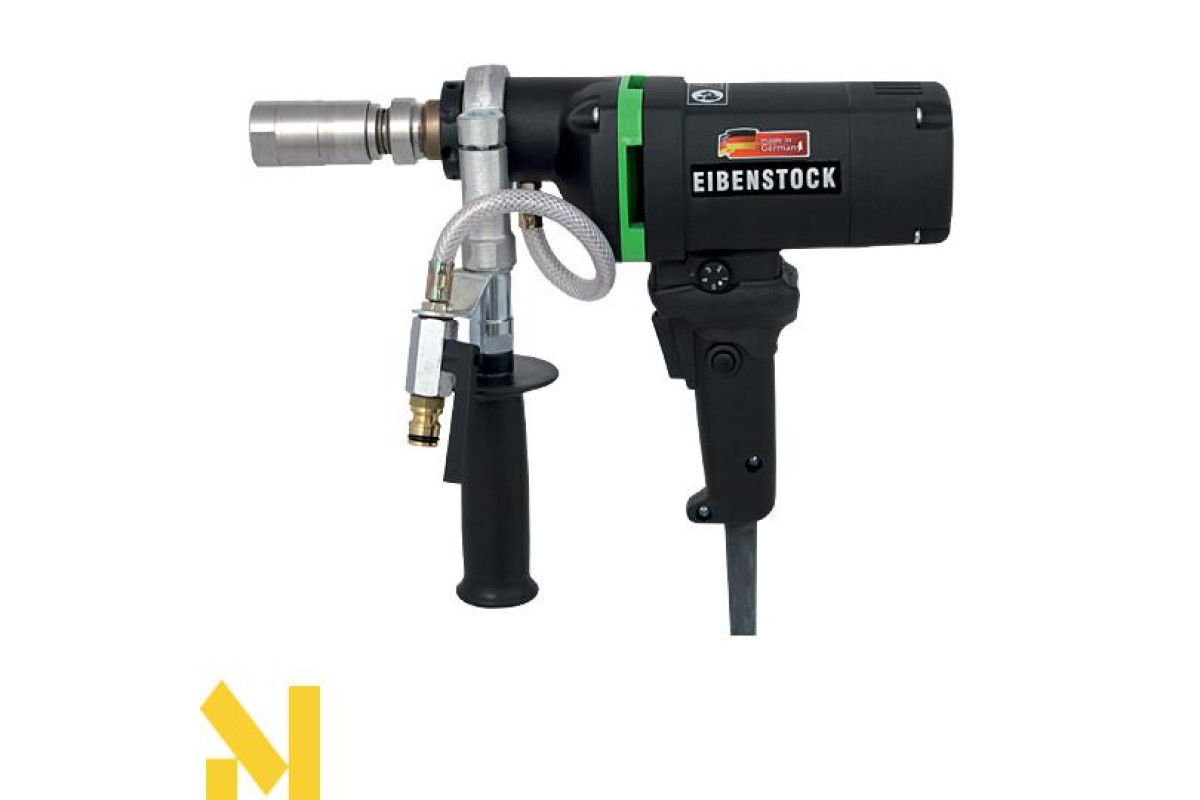 Алмазна дриль Eibenstock END 1550 P свердлить отвори в будівельних матеріалах, таких як: натуральний камінь, керамічна плитка, кераміка, фарфор, кам'яна кераміка, скло, залізобетон. Потужність двигуна 2,5 квт. Максимальний діаметр буріння – 162 мм. При бурінні можливе охолодження алмазної коронки водою. Подача води в місце буріння охолоджує коронку, що позитивно впливає на її ресурс, а також зменшує утворення пилу. Також дриль можна використовувати в комплекті зі станиною для стаціонарного застосування під час буріння великими діаметрами коронок.