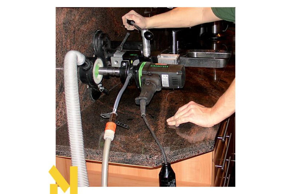 Мокре свердління отворів у натуральному камені, керамічній плитці, кераміці, фарфорі, кам'яній кераміці, склі, залізобетоні