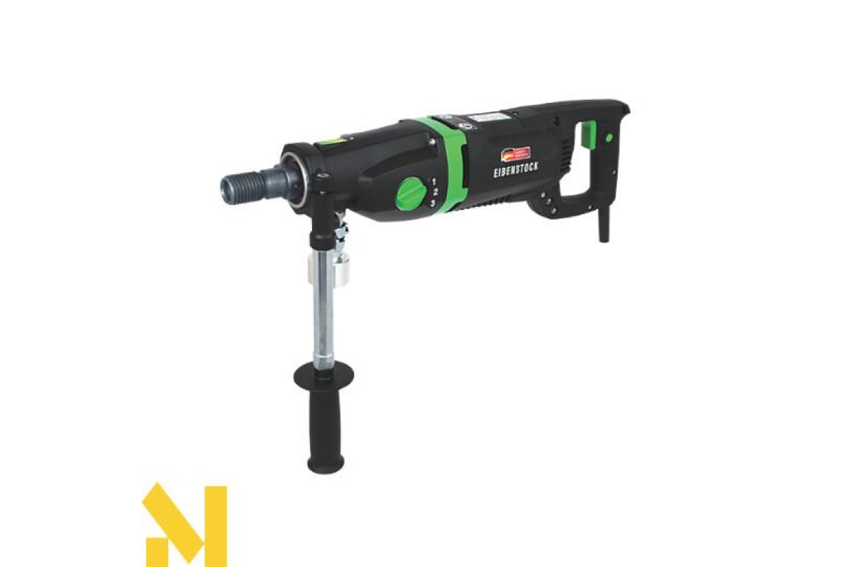 Алмазна дриль Eibenstock ETN 162/3 застосовується для мокрого та сухого свердління будівельних матеріалів. Мокре свердління використовується при роботі з силікатною цеглою, цегляною кладкою, а сухе при роботі з силікатною цеглою, цегляною кладкою, клінкерною цеглою та іншим матеріалом. Потужний двигун 2,2 квт для ефективної роботи. Максимальний діаметр свердління – 202 мм. Для сухого свердління можна використовувати станина. У дрилі є індикатор робочого стану, для сповіщення про майбутню заміну вугільних щіток. Дриль оснащений тришвидкісним редуктором для оптимальної швидкості свердління та забурювання.