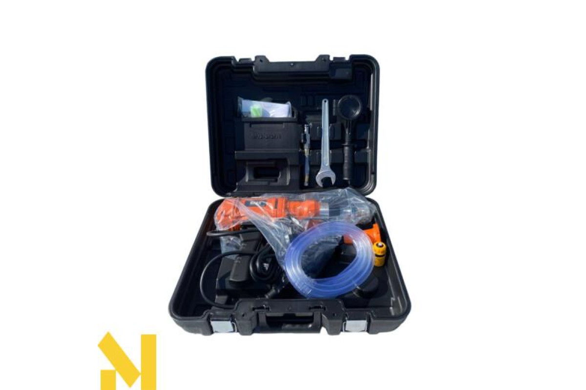 Установка алмазного буріння по бетону Bass Polska 7751 - це потужний професійний інструмент для сухого і мокрого свердління отворів у залізобетоні, штучному і натуральному камені, цеглі та вогнетривких матеріалах. Має 3 швидкості обертання, що дозволяє встановити оптимальні параметри для різних матеріалів і розміру отворів. Максимальний діаметр свердління бетону - 76 мм, цегли - 105 мм.