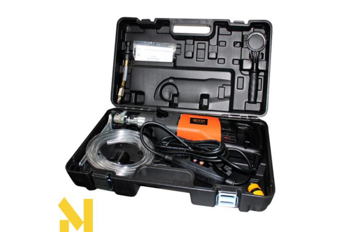 GTM DK-160/2PD - професійне обладнання для проведення будівельних робіт. Використовується під час прокладання комунікацій, електропроводки та вентиляції. Має вбудований двигун із потужністю 1900 Вт, що дає змогу видати до 2160 об/хв. Може використовуватися як для свердління з підведенням води, так і для сухого свердління в режимі з мікроударом. Максимальний діаметр свердління в м'яких матеріалах - до 160 мм, у бетоні та залізобетоні - до 110 см. Особливістю цієї моделі є можливість роботи з коронками із зовнішнім різьбленням 1 1/4" і коронками з внутрішнім різьбленням 1/2".