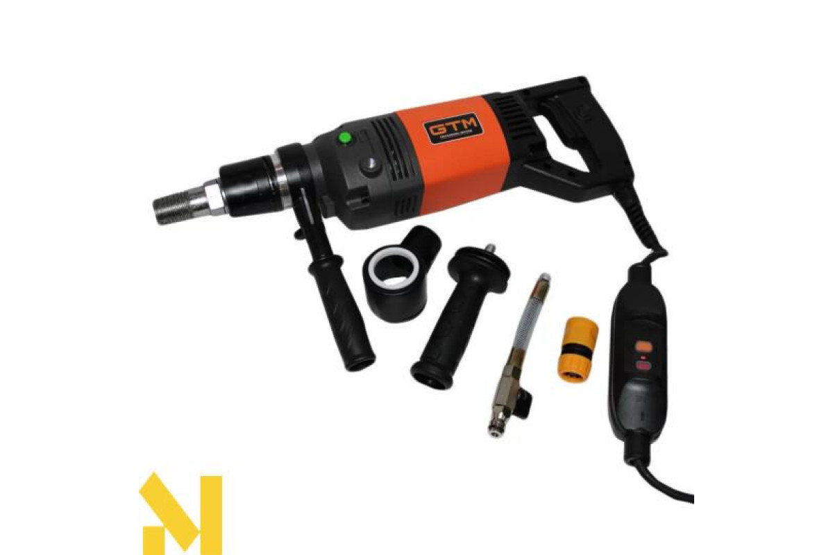 GTM OND-916PD-G - професійне обладнання для проведення будівельних робіт Використовується для прокладання комунікацій, електропроводки та вентиляції. Має вбудований двигун з потужністю 2300 Вт, що дозволяє видати до 1700 об/хв. Може використовуватися як для свердління з підведенням води, так і для свердління в режимі з мікроударом. Максимальний діаметр свердління в м'яких матеріалах – до 160 мм, у бетоні та залізобетоні – до 102 см.