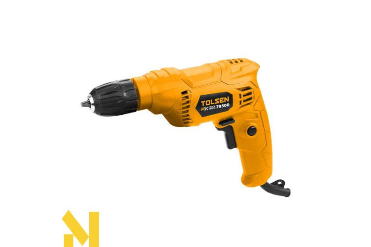 Безударний дриль Tolsen 79500 оснащений швидкозатискним патроном, який забезпечує просту зміну оснастки.