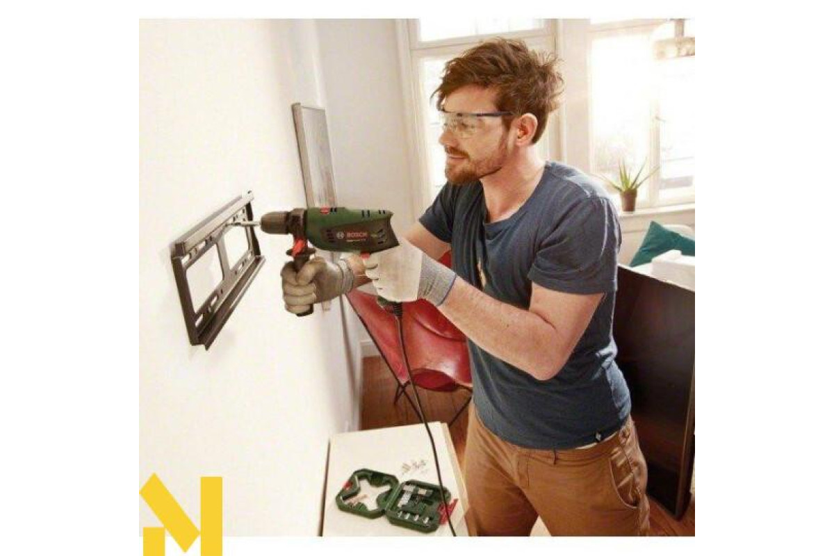 Ударний дриль BOSCH EasyImpact 540 0603130201 - новинка, потужний 3-режимний електроінструмент для сухого свердління з серії "Домашній майстер" в компактному виконанні корпусу з мінімальною вагою (всього 1,5 кг), працює в режимі "Закручування/Свердління/Свердління з ударом". Модель ударної електродрилі BOSCH EasyImpact 540 призначена для роботи з бетоном (свердління, загвинчування шурупів), деревиною (свердління, загвинчування шурупів), чорними металами (свердління, загвинчування шурупів), пластиком (свердління, загвинчування шурупів), каменем (свердління, загвинчування шурупів) , натуральними матеріалами (свердління). Потужний двигун 550 Вт, встановлений в електродриль ударну BOSCH EasyImpact 540, дозволяє створити високий крутний момент 11 Нм. Дриль BOSCH EasyImpact 540 оснащена ключовим патроном з діаметром затиску 1,5-13 мм. Наявність реверсу дозволяє виконувати викручування шурупів і усувати ситуації при заклинюванні оснащення в заготовці. Частота обертання оснащення регулюється електронікою - регулювання в діапазоні 50-3000 об/хв дозволить обробляти і тендітні, і міцні заготовки.