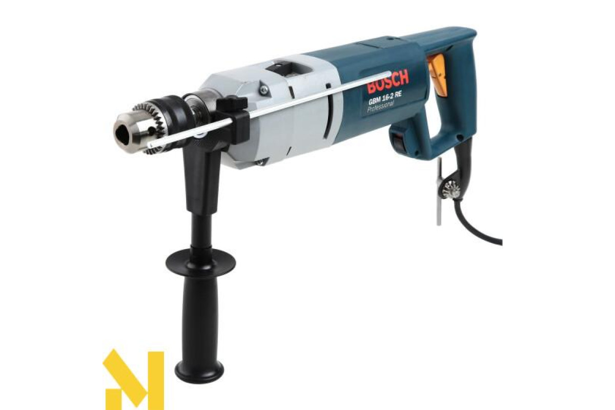 Ударна 2-швидкісний дриль Bosch GBM 16-2 RE завдяки своєму компактному виконанню призначена для роботи у важкодоступних місцях, а також для роботи з деревом і металом. Модель оснащена електричним блоком регулювання числа обертів для зручного початку свердління. Також апарат можна використовувати і для розмішування будівельних сумішей. Електродриль Бош GBM 16-2 RE виконана в ергономічному дизайні, який передбачає всі якості і можливості для свердління в обмежених просторах і свердління над головою в природних умовах експлуатації. Крім того апарат можна сміливо використовувати для роботи у важких умовах, так як його корпус виконаний з високоякісних ударостійких матеріалів, що робить дриль незамінним помічником для серійного свердління, а додаткова торцева ручка дозволяє більш надійно тримати інструмент. Високоспритний дриль GBM 16-2 RE від заводу-виробника Bosch гарантує високу точність в роботі і довговічність, так як всі робочі вузли оснащені кульковими і роликовими підшипниками, а наявність реверсу і швидкозатискного патрона дає додаткову перевагу і комфорт у використанні даної моделі. Завдяки наявності потужного електричного приводу дриль Bosch GBM 16-2 RE є високопродуктивним електроінструментом, так як двигун здатний забезпечити споживача 1260 об / хв.