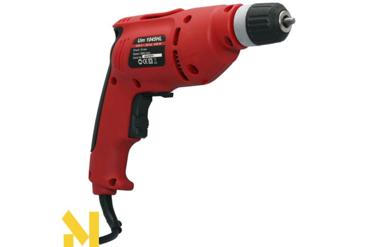 Електрична дриль Vitals Master Um 1045HL - надійний інструмент, призначений для свердління отворів в деревині, синтетичних матеріалах, а також закручування і відкручування різних кріпильних виробів (шурупів, гвинтів, саморізів, конфирматов, дюбелів, болтів і гайок) з використанням спеціальних насадок ( біт).
