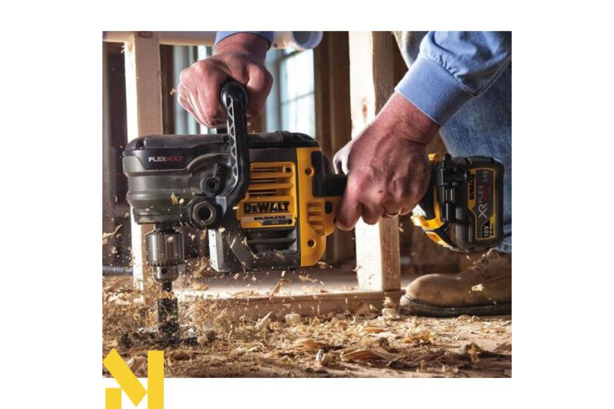 Кутовий дриль DeWALT DCD460NT забезпечує доступ в важкодоступних місцях для проведення робіт з комфортом. Її компактна конструкція і продумана форма дозволяють працювати в умовах обмеженого простору. Відсутність електричного кабелю робить можливим виконання завдань на висоті, в вертикальному положенні. В якості джерела живлення використовується потужний 54В літій-іонний акумулятор, завдяки чому є можливість роботи на знеструмлених об'єктах.