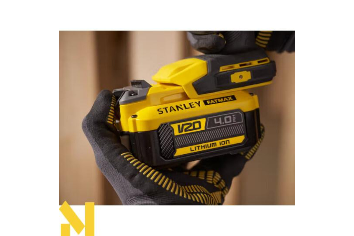 ЧАСТИНА АКУМУЛЯТОРНОЇ СИСТЕМИ STANLEY FATMAX®® V20 18 В - ЖИВІТЬ УСІ СВОЇ ІНСТРУМЕНТИ V20 ЗА ДОПОМОГОЮ загального, нового та вдосконаленого літій-іонного акумулятора 18 В, який з легкістю виконає роботу
