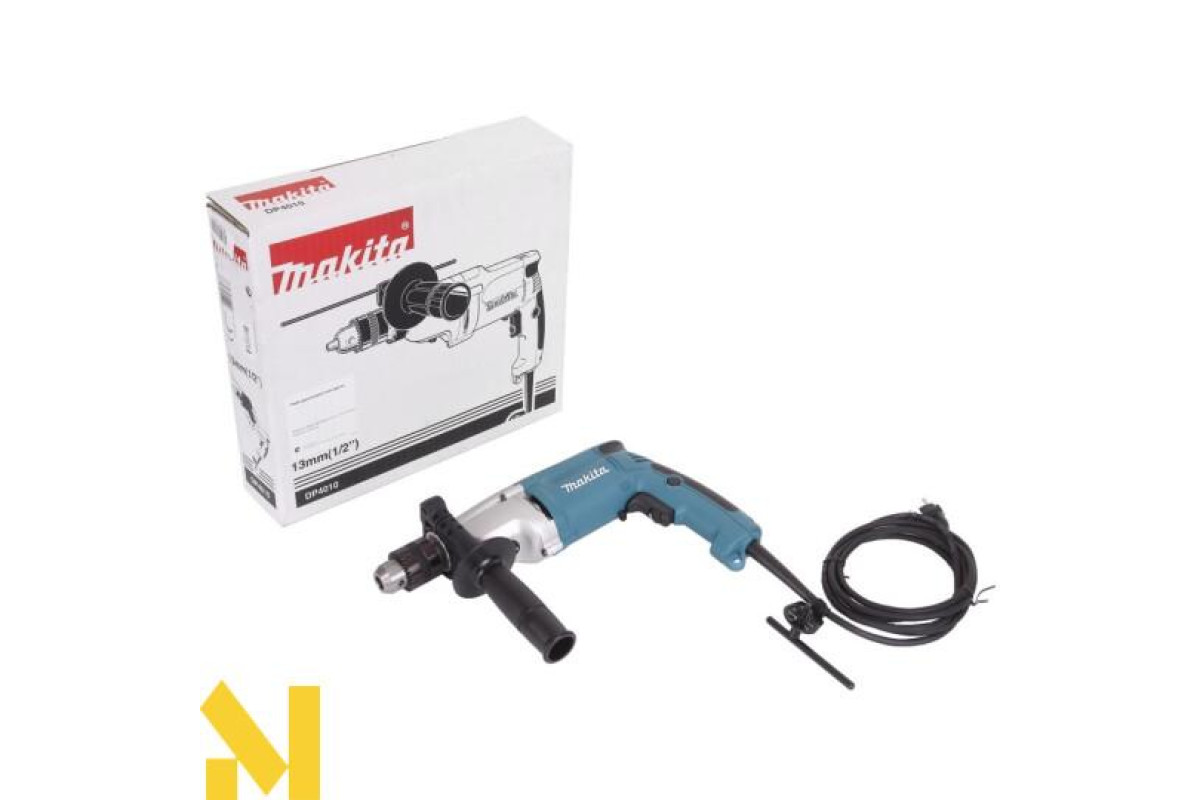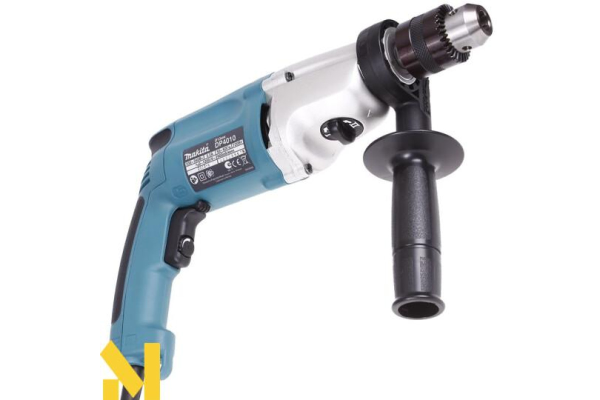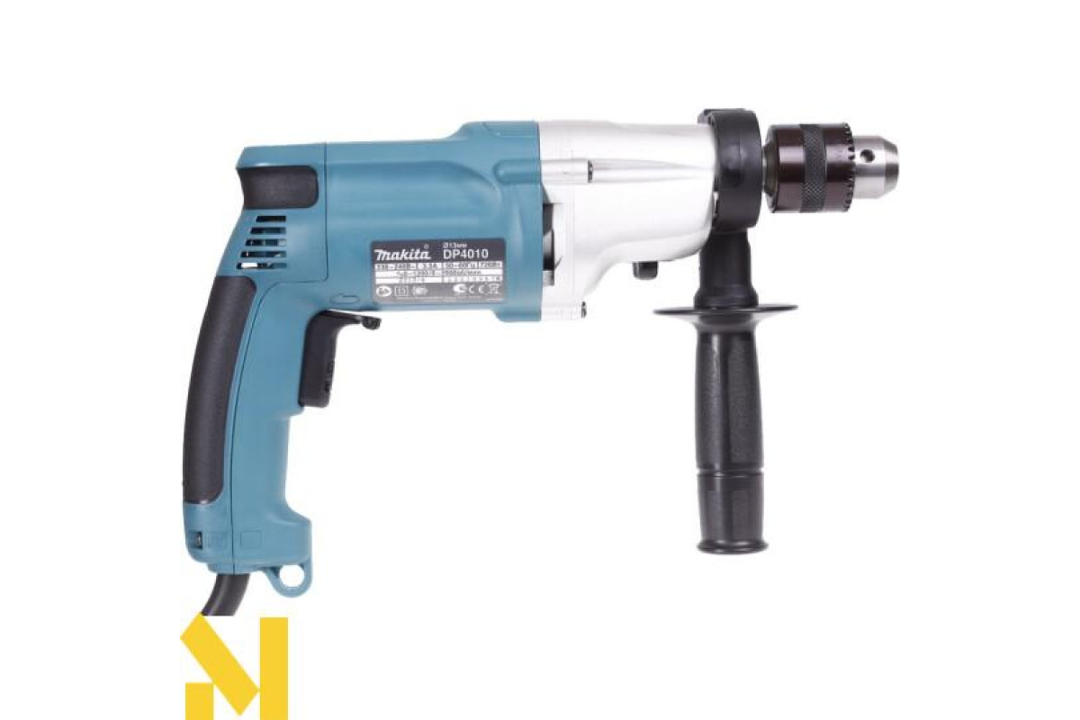 Дриль Makita DP4010 - це ідеальний інструмент для проведення будівельних та ремонтних робіт. Завдяки шийці шпинделя, що відповідає європейському стандарту 43 мм, дриль можна встановлювати в стійках свердлильних верстатів. Вузький і компактний корпус має міцний металевий кожух редуктора. Швидкість двигуна регулюється натисканням кнопки. Розчіплювати муфта зупиняє рух свердла при його заклинюванні. У комплект поставки, крім дрилі Makita DP4010 входить також зубчастий патрон, 2 бічних ручки і обмежувач глибини.