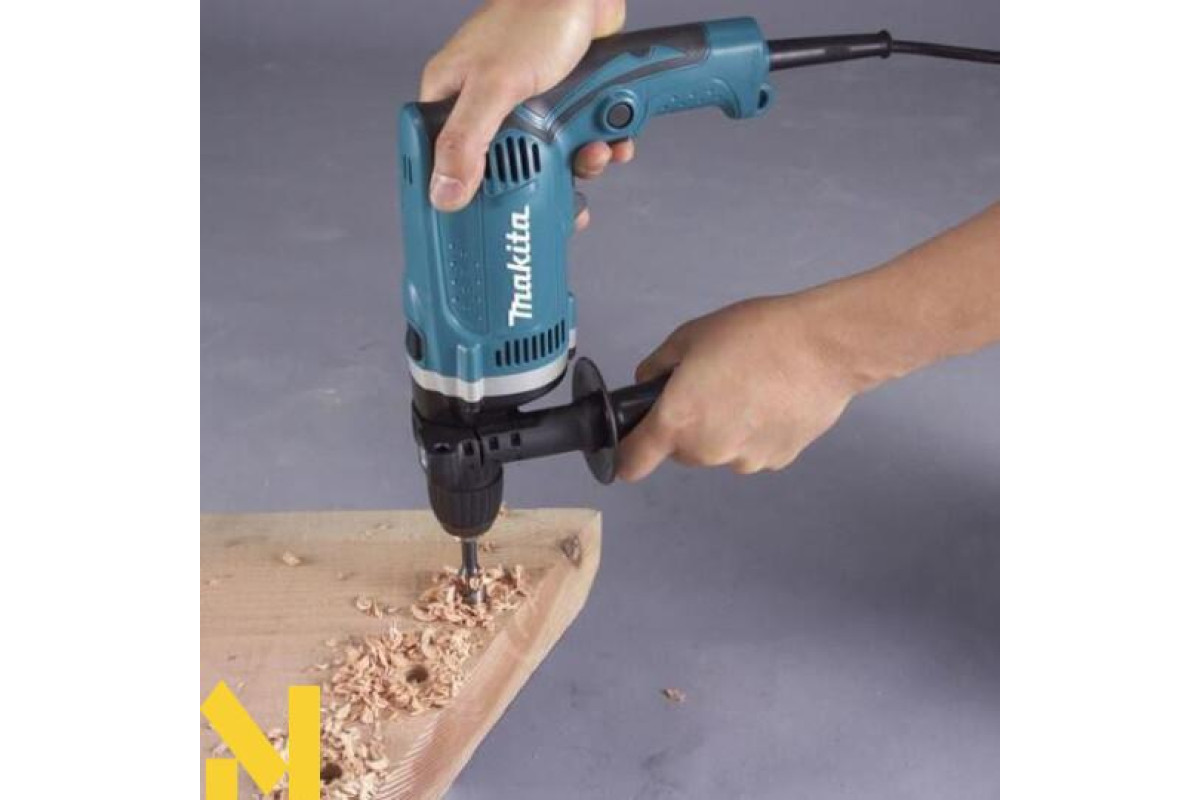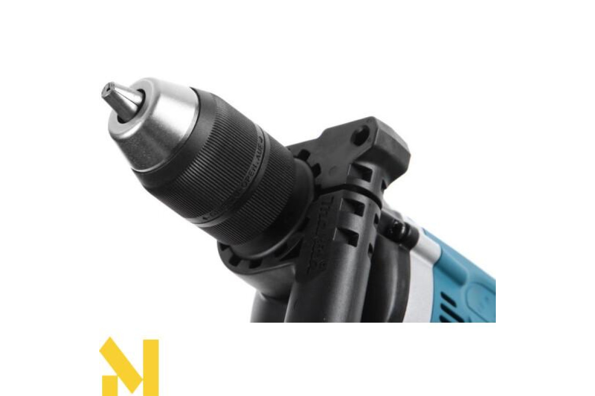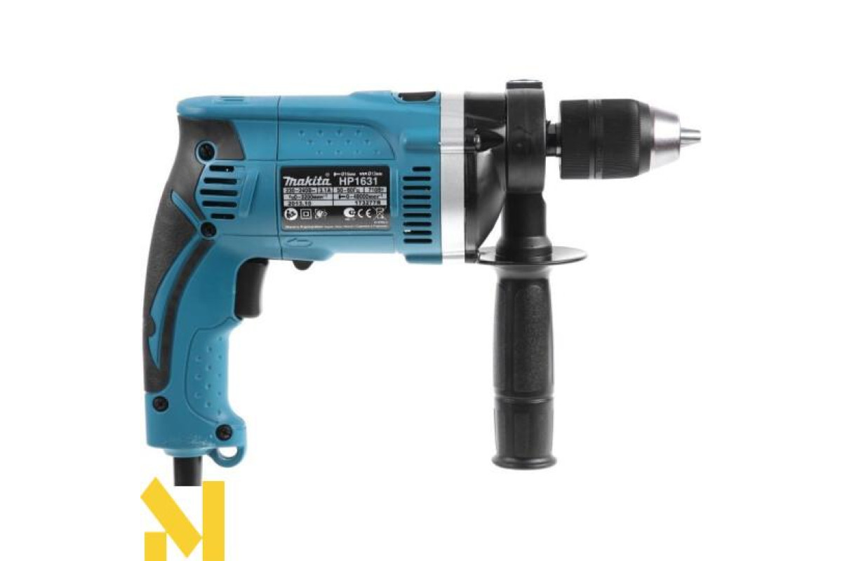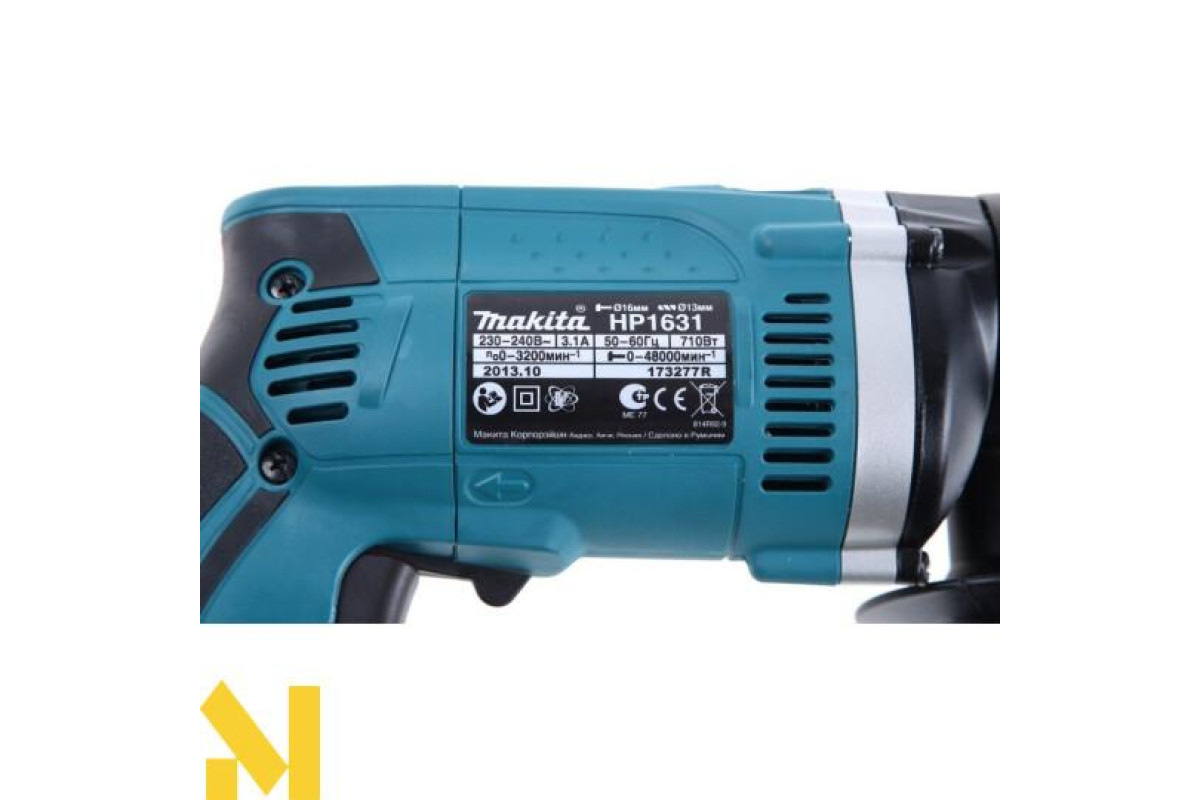 Ударний дриль Makita HP1631K відноситься до професійного інструменту. Він працює в трьох режимах: свердління з ударом та без, а також загвинчування. А ще має опцію реверса. Техніка функціонує на двигуні потужністю 710 Вт, який видає 3200 об/хв. і 48000 уд/хв. Завдяки алюмінієвому корпусу редуктора, може витримувати великі навантаження. Пристрій здатен зробити отвір у деревині діаметром 30 мм, бетоні 16 мм, сталі 13 мм.