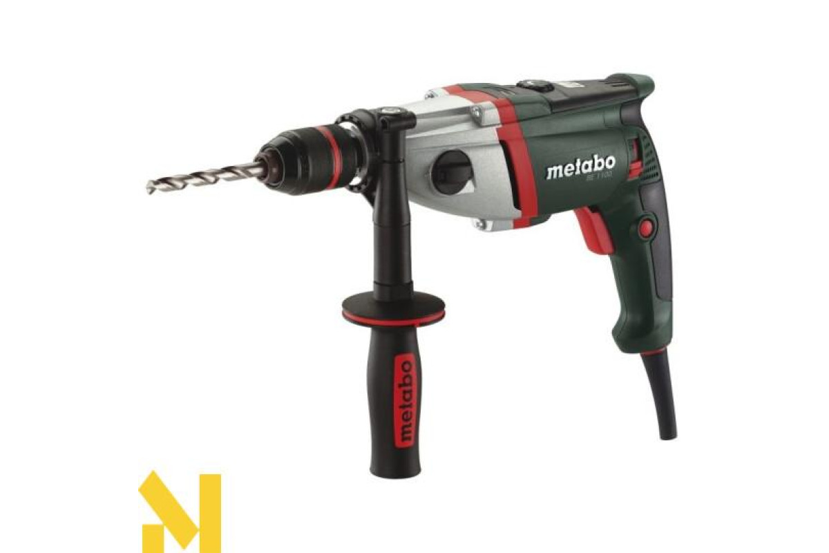 - Дриль Metabo BE 1100 обладнана електронікою регулювання обертів з системою підтримки постійного числа обертів під навантаженням Metabo VTC.