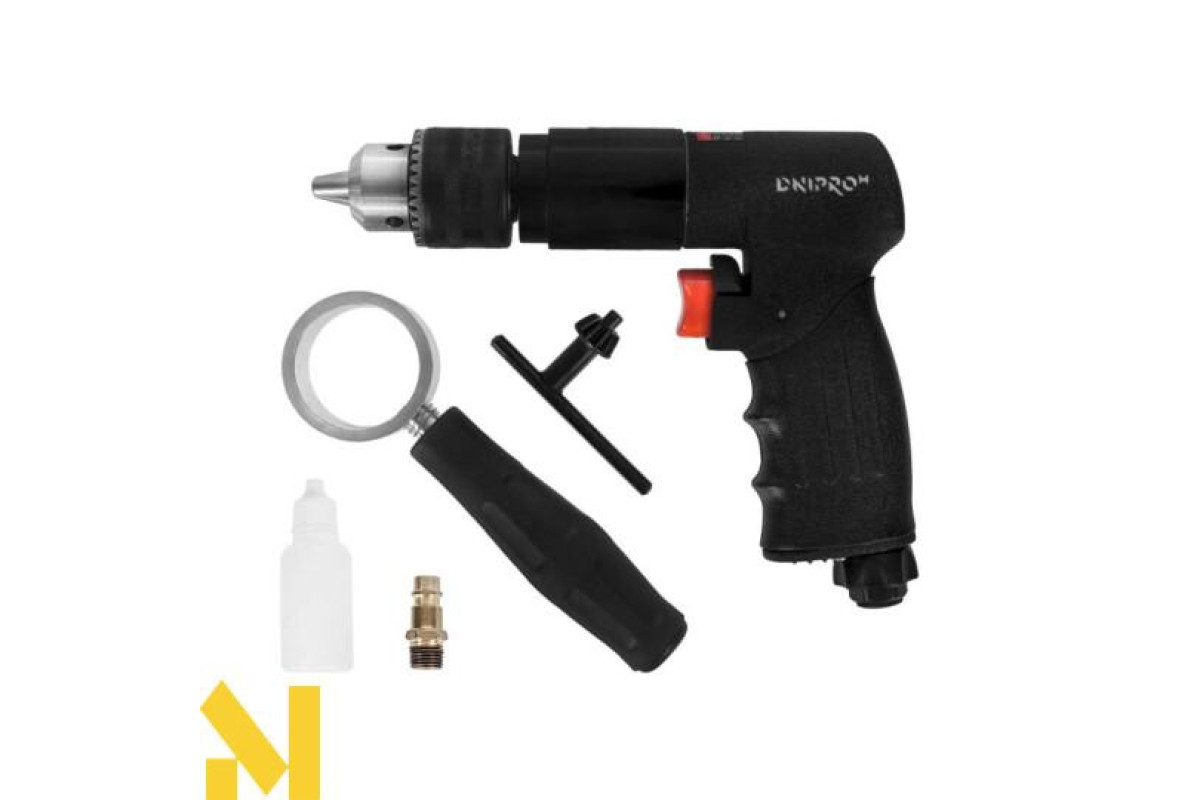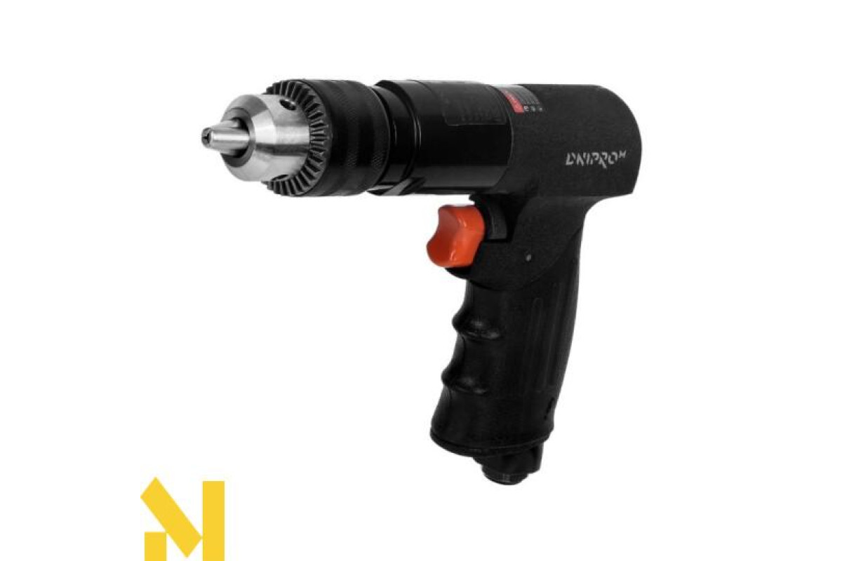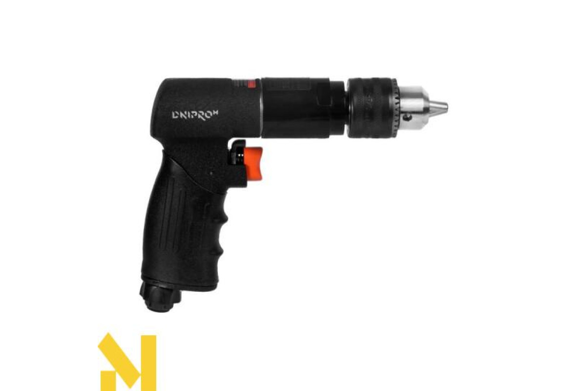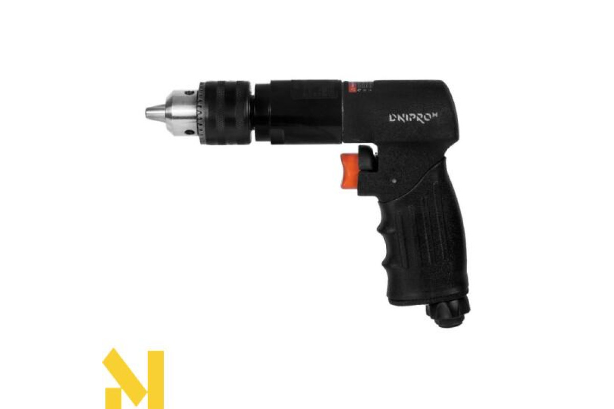 Дриль пневматичний Dnipro-M PD-70 призначений для свердління отворів різних діаметрів в таких матеріалах: метал, дерево, ДСП та виконання інших видів робіт, таких як загвинчування кріпильних виробів. Максимальна кількість обертів холостого ходу складає 700 об/хв, що дозволяє використовувати інструмент не тільки для свердління, а також для загвинчування кріплень. Дриль має функцію реверсу і регулятор обертів, що розширює спектр виконуваних робіт (свердління, загвинчування), в композитних, металевих матеріалах та при роботі з деревом. Завдяки 3-кулачковому патрону ключового типу (1,5-13 мм) оснащення фіксується надійно і просто, що зменшує ризик випадіння з інструменту біти, свердел та інших видів оснастки