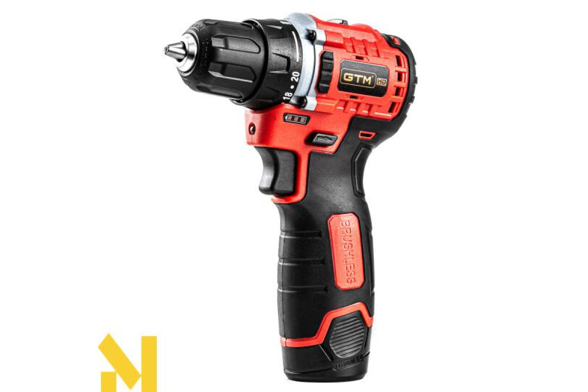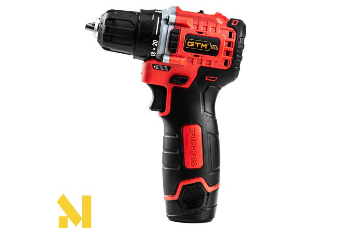 GTM DS12/38BL - компактний дриль-шурупокрут професійного класу з живленням від Li-Ion акумуляторів напругою 12 В. У шурупокруті встановлений швидкозатискний 10 мм патрон для роботи з бітами і свердлами. Двигун у цій моделі безщітковий, що значно зменшує розміри корпусу і вагу.Редуктор двоступеневий і дає змогу регулювати максимальну швидкість залежно від завдання. У даній моделі присутні 20 режимів для закручування кріплень, з максимальним крутним моментом 38 Н*м, а також режим свердління.