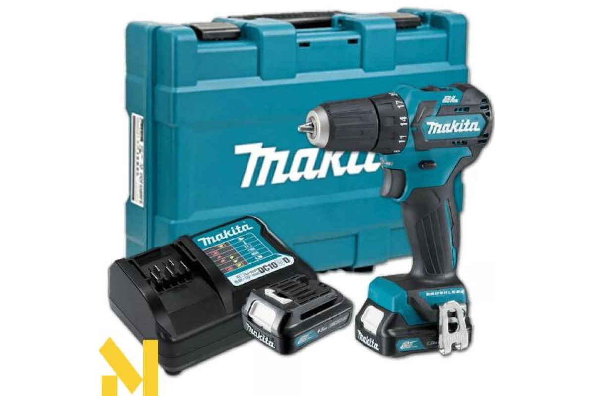Акумуляторний дриль-шурупокрут Makita DF332DWYE (CXT, 1.5Аг х 2шт, DC10WD, кейс, 35/21Нм)