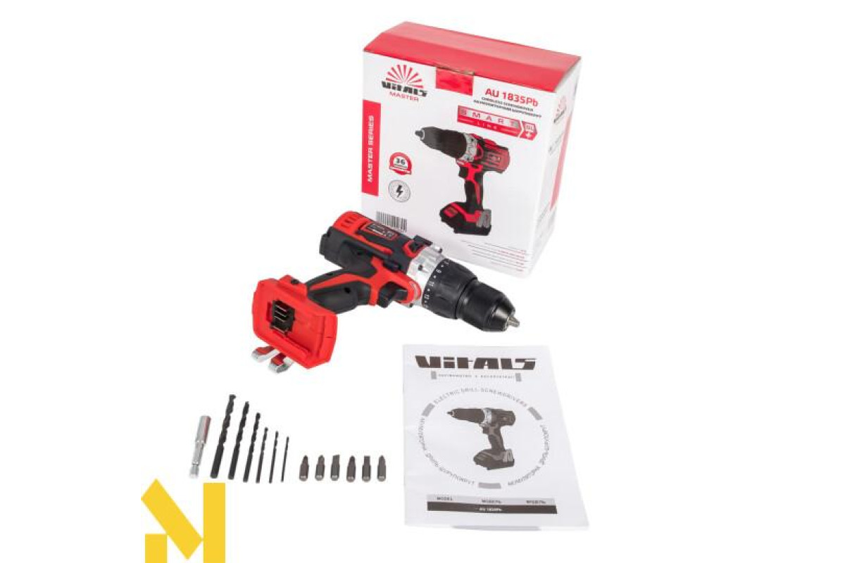У комплекті постачання дриля-шурупокрута Vitals Master AU 1835Pb знаходиться широкий асортимент аксесуарів – біти, насадки, свердла. Тож придбавши інструмент ви одразу можете приступати до необхідної роботи.