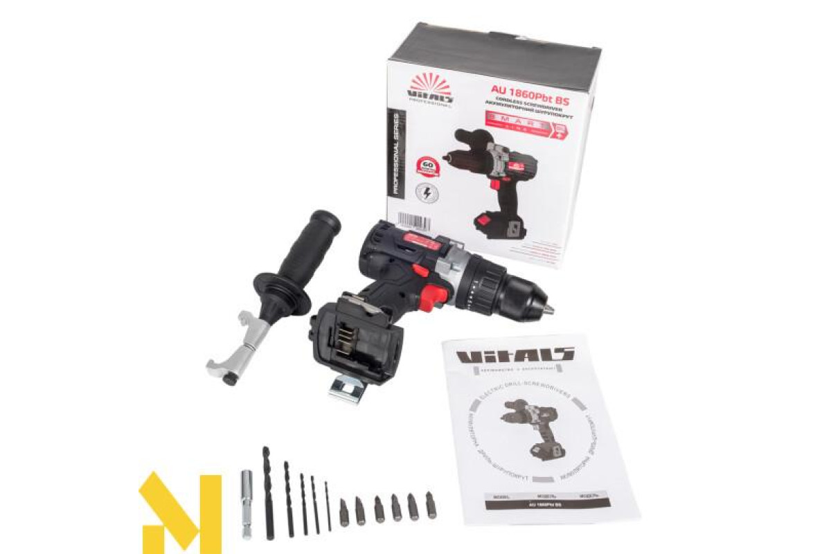 У комплекті поставки дрилі-шуруповерта Vitals Professional AU 1860Pbt BS знаходиться широкий асортимент аксесуарів - біти, насадки, свердла. Тому придбавши інструмент, ви відразу можете приступати до виконання необхідної роботи.