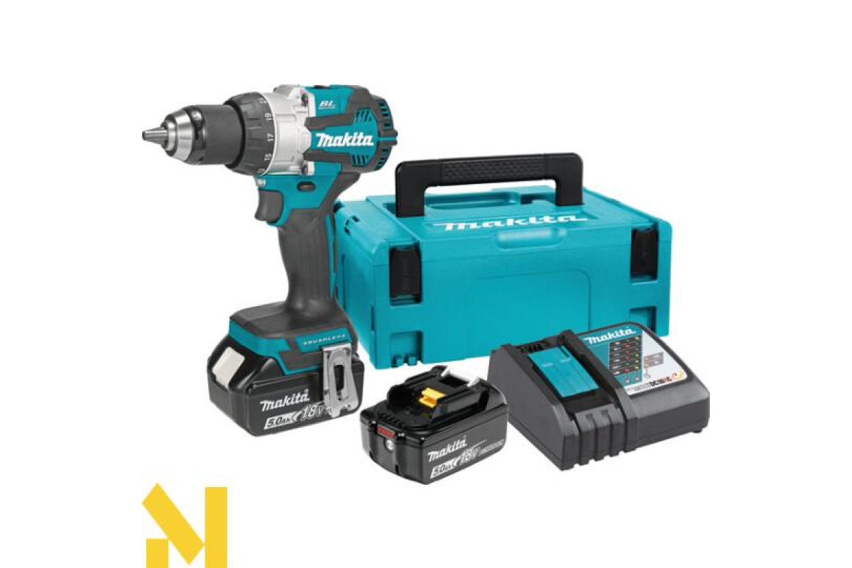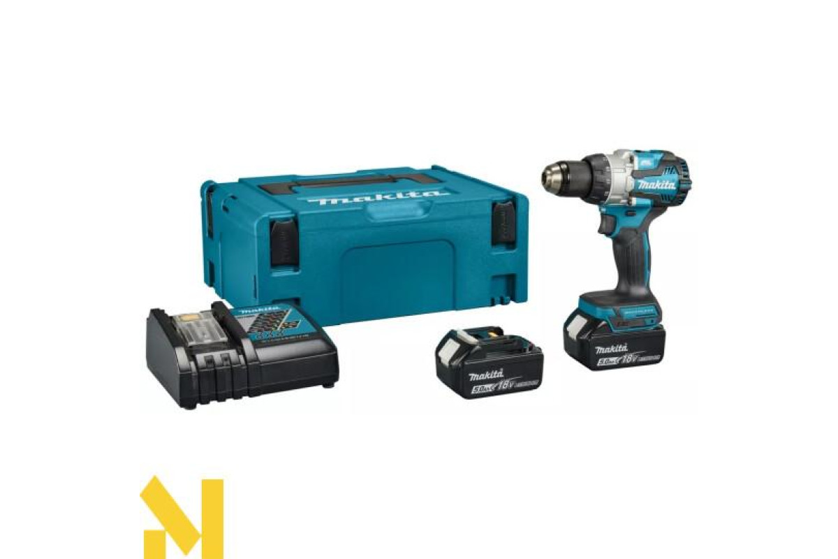 Makita DHP489RTJ LXT - ударний дриль-шурупокрут, що працює на акумуляторній батареї, має високу потужність для ефективного свердління та загвинчування. Поєднуючи в собі ударне свердління, шурупокрут та звичайний дриль, вона надає широкі можливості для виконання різних завдань.