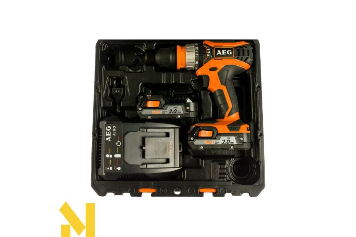 Акумуляторний дриль-шуруповерт AEG BSB18C2X LI-202C оснащений швидкознімним патроном.