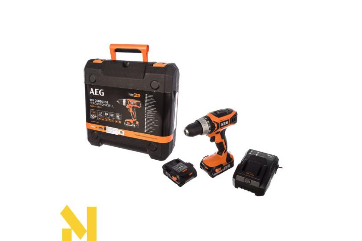 Акумуляторний ударний дриль-шуруповерт AEG BSB18G3LI-202C - надійний інструмент, призначений для свердління отворів та закручування шурупів у місцях, незабезпечених електроживленням.
