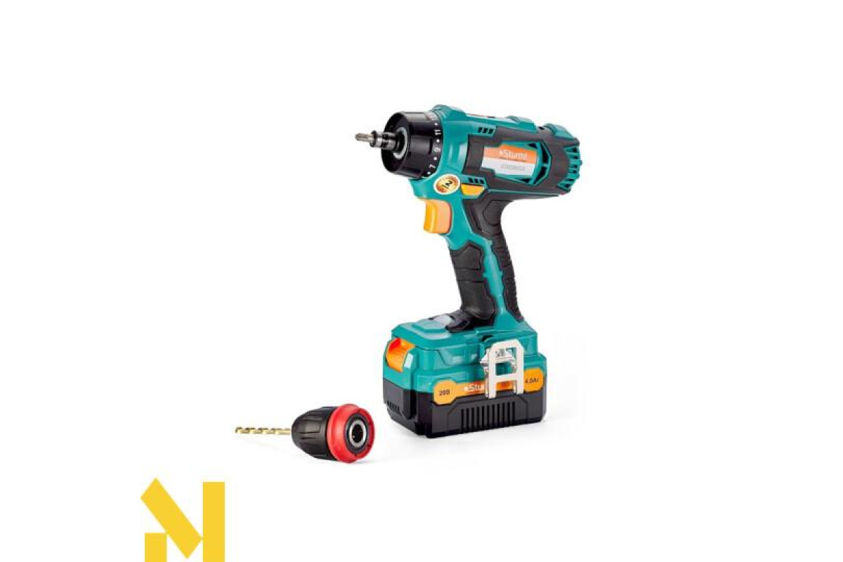 Акумуляторна дриль-шуруповерт Sturm CD3220CLD з 20В Li-ion акумуляторами зі знімним швидкозажимний патроном ідеально підходить для робіт по дереву, металу і пластику: для свердління невеликих отворів і загвинчування / вигвинчування відповідних кріпильних елементів як вдома, так і в майстерні. У моделі встановлений планетарний редуктор підвищеної прочтності. Модель оснащена муфтою регулювання крутного моменту з 19 позиціями на вибір. Максимальний момент затягування - 40 Нм. Двошвидкісний редуктор, а також наявність електронного регулювання обертів забезпечують максимальну зручність користування. Інструмент поставляється без акумулятора і зарядного пристрою.