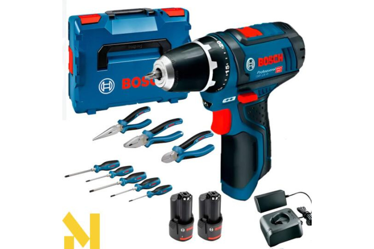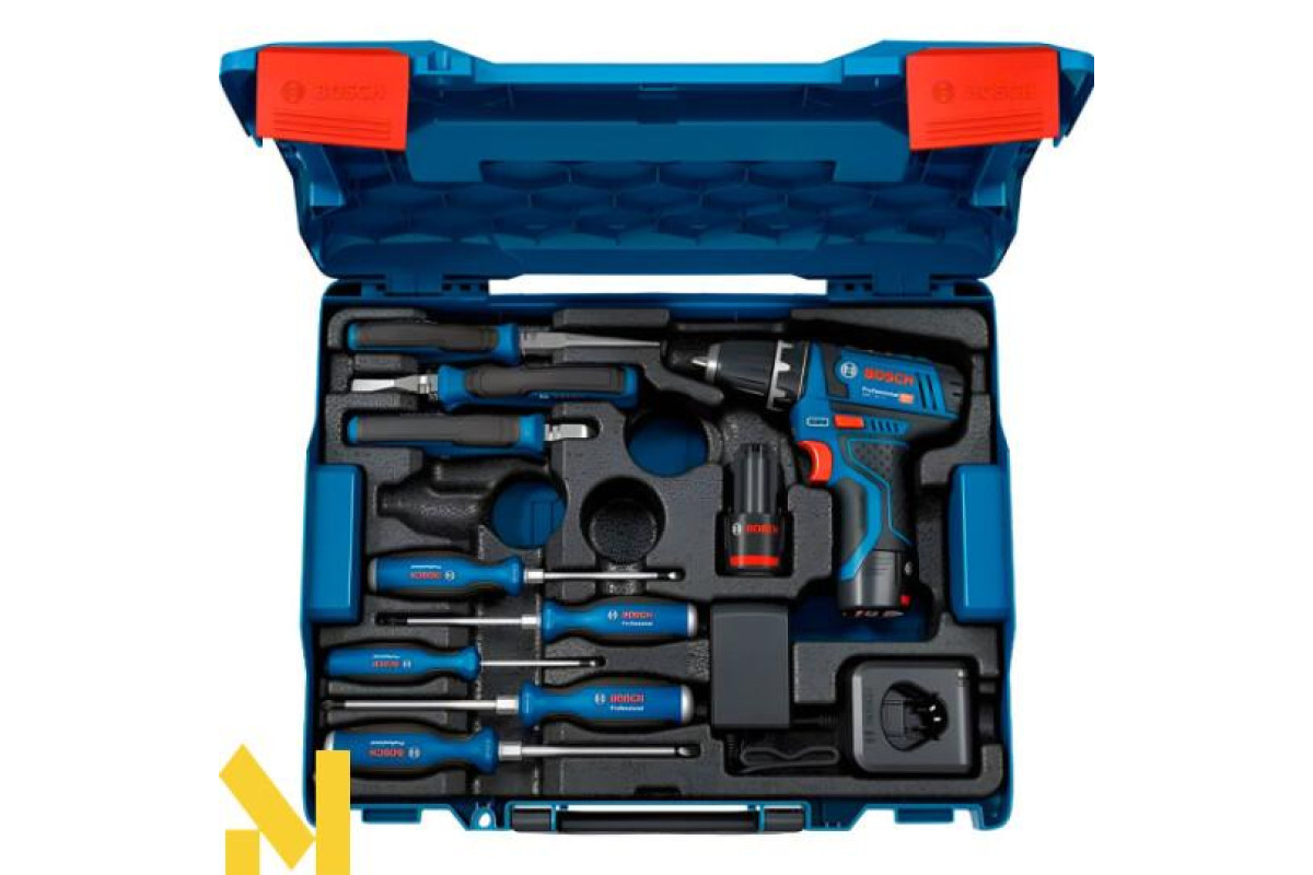 Акумуляторний дриль-шуруповерт Bosch GSR 12V-15 Professional з набором інструментів - комплексне рішення для виконання різних завдань, від дрібних ремонтних робіт до складніших проектів.