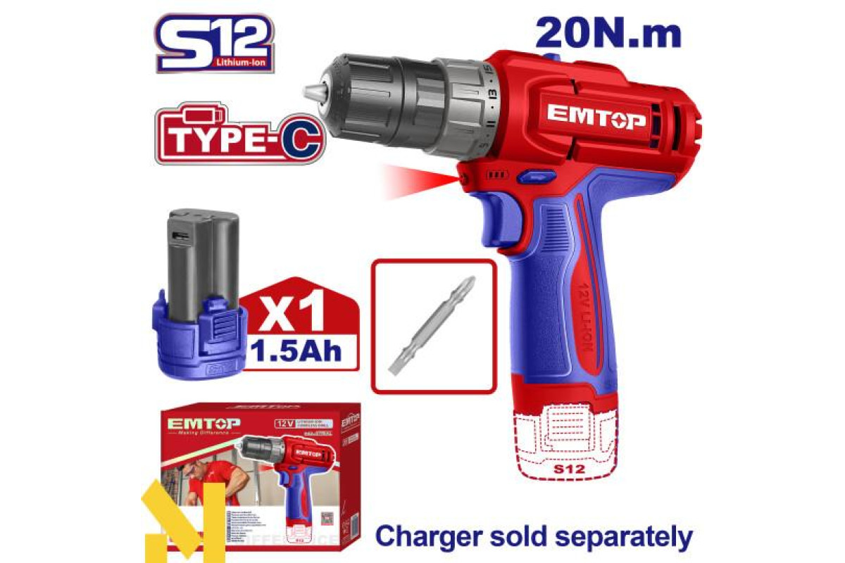 Дриль-шуруповерт акумуляторний EMTOP ECDL122061