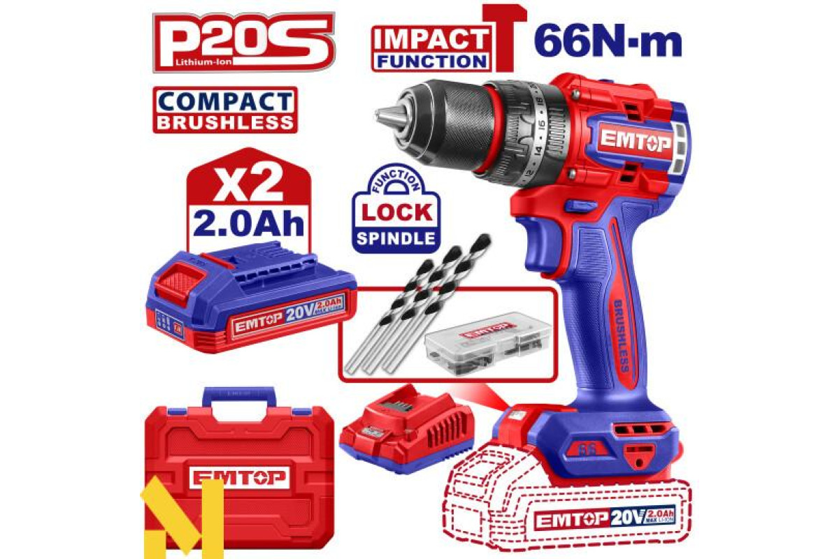 Дриль-шуруповерт акумуляторний Emtop ECIDL20668 — це поєднання передових технологій, зручності та доступної ціни. Інструмент створений для забезпечення максимальної продуктивності та комфорту під час роботи.