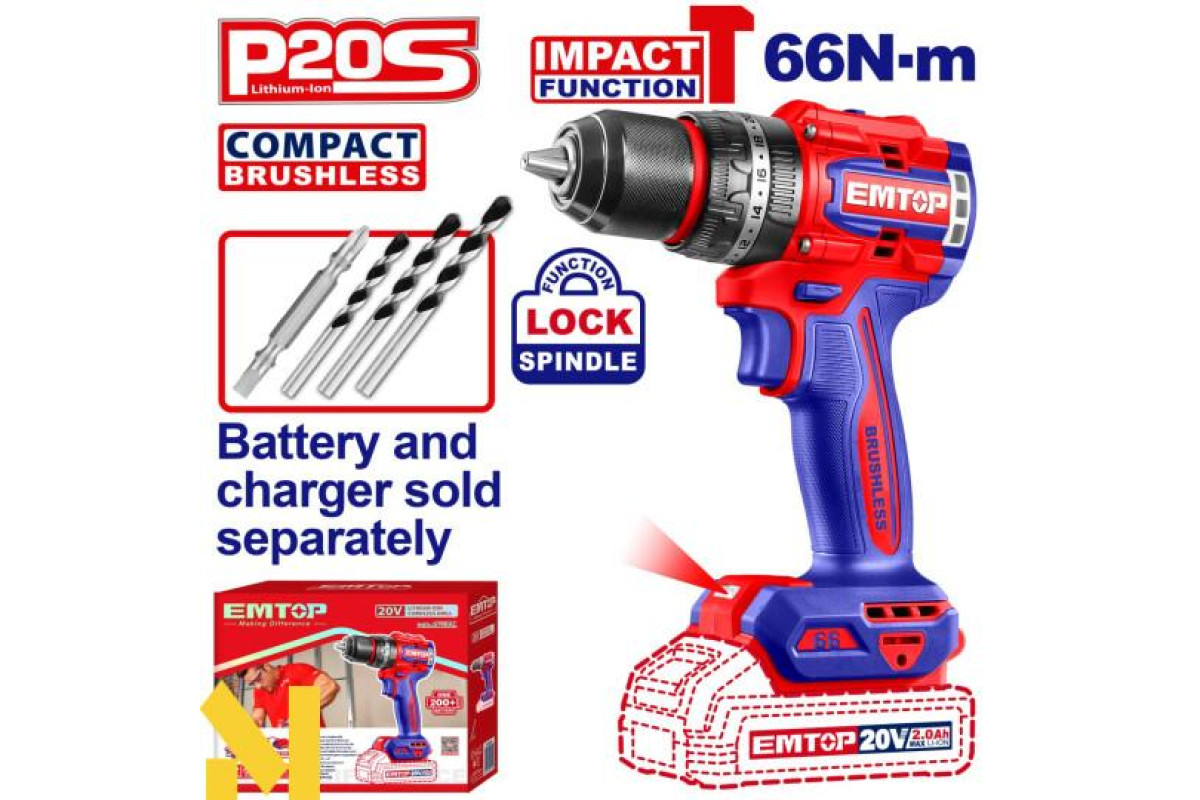 Дриль-шуруповерт акумуляторний Emtop ECIDL20668: універсальний інструмент для роботи