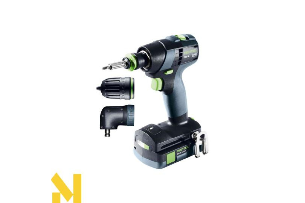 Швидкий перехід між режимами свердління, зенкерування та загвинчування: розроблений ще у 2001 році патрон CENTROTEC є одночасно свердлильним патроном та тримачем біт. Для використання великої оснастки CENTROTEC. І це при тому, що він вдвічі менший і на 80% легший за стандартний патрон: типовий для Festool з набуття звичного для Festool якості.