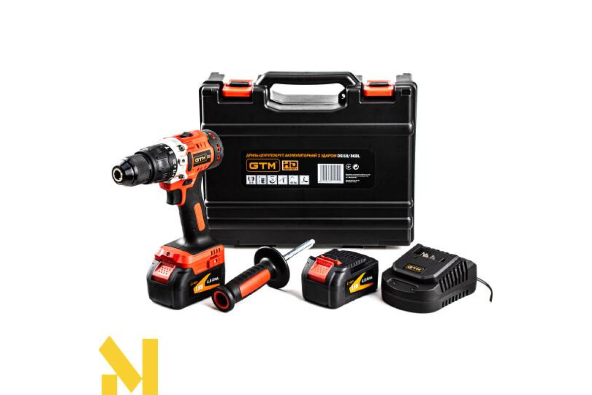 GTM DSI18/80BL - безщітковий дриль-шуруповерт професійного класу з живленням від Li-Ion акумуляторів напругою 18 В. У шурупокруті встановлений повністю металевий швидкозатискний 13 мм патрон для роботи з бітами і свердлами. Редуктор у цій моделі двоступеневий, що дає змогу регулювати максимальну швидкість залежно від завдання. У даній моделі присутні 20 режимів для закручування кріплень, з максимальним крутним моментом 80 Н*м, а також режим свердління і свердління з ударом.