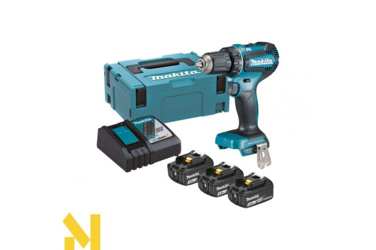 Makita DDF485RF3J – акумуляторний шуруповерт для свердління отворів та роботи з кріпленням. Обладнаний сучасним безщітковим двигуном, який має високий ККД, забезпечує довгий термін служби та не потребує технічного обслуговування. Відмінний запас енергії для автономної роботи завдяки трьом акумуляторам по 3 Аг у комплекті.