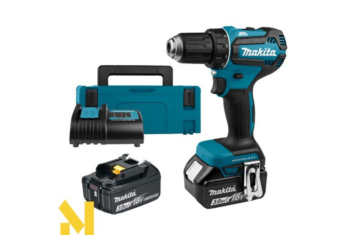 Доставляється електроінструмент в кейсі Makpac із 2 комплектними акумуляторами ємністю по 3 Ач, які легко змінити один на інший, та зарядним пристроєм DC18SD.