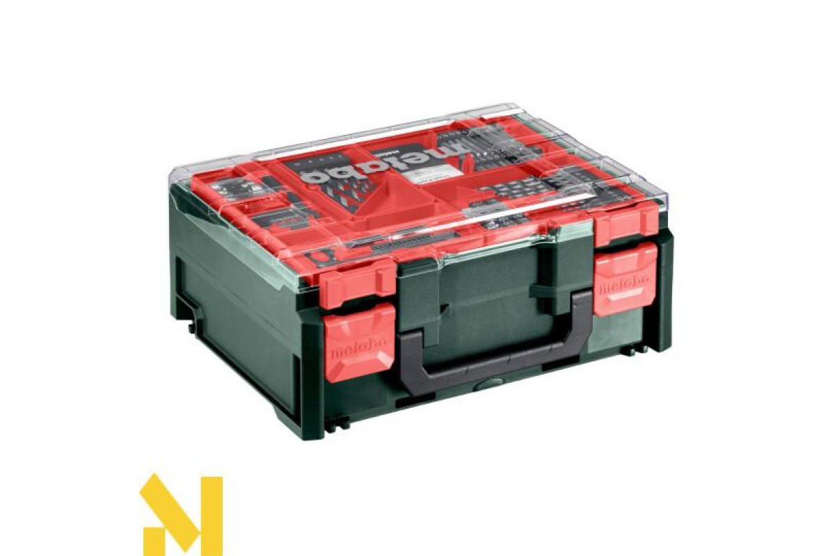 Пересувна майстерня (74 компоненти): 5 свердел по дереву (4/5/6/8/10 мм), 14 свердел HSS (1,5/1,5/2/2/2,5/3/3/3,5/4/4,5/5/5,5/6/6,5 мм), 20 інструментальних насадок (біт) довжиною 25 мм (PH1/PH2/PH2/PH3/PZ1/PZ2/PZ2/PZ2/PZ3/H3/H4/H5/H6/T15/T20/T25/T30/S4/S5/S6), 10 інструментальних насадок (біт) довжиною 50 мм (S4/S5/S6/PZ1/PZ2/PZ3/T15/T20/T25/T30), 10 інструментальних насадок (біт) довжиною 75 мм (S4/S5/S6/PZ1/PZ2/PZ3/T15/T20/T25/T30), тримач інструментальних насадок (60 мм), 8 торцевих ключів (6/7/8/9/10/11/12/13 мм), зенкер по дереву (12,7 мм), центрувальний штифт (5x100 мм), універсальний ніж з 2 запасними лезами, вимірювальна рулетка (3 м/10"), графітовий олівець (HB), блокнот