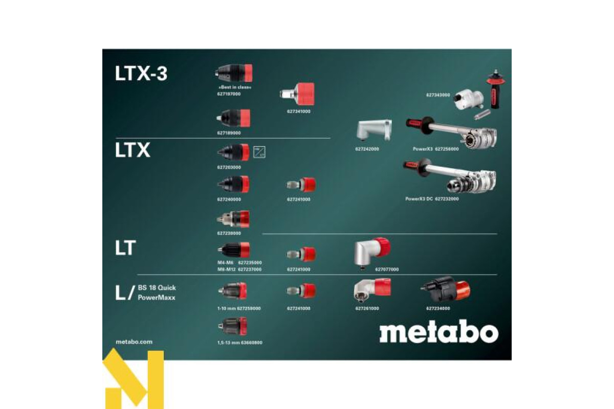 Система Metabo Quick: швидка заміна патрона, тримача інструментальних насадок, кутового адаптера тощо для швидкої адаптації до інших видів або режимів роботи