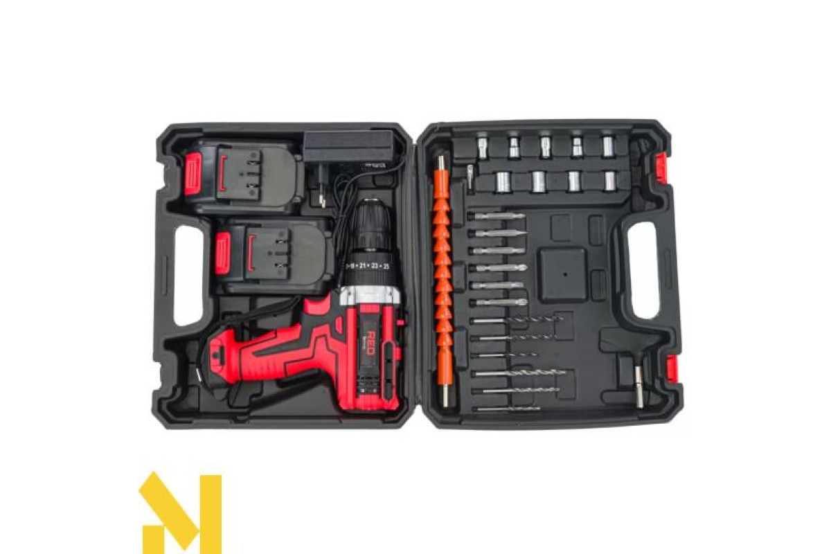 Дриль-шуруповерт має муфту з 25 положеннями регулювання крутного моменту для ефективного загвинчування шурупів різного розміру в різні матеріали + спеціальне положення для свердління та ударного свердління. А також двошвидкісним перемикачем, який змінює діапазон швидкості обертання (0-350 об/хв / 0-1350 об/хв).