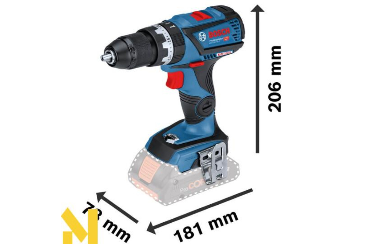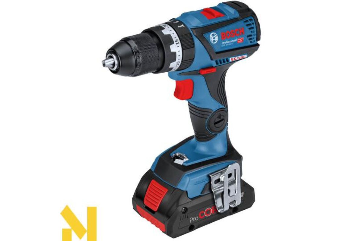 Акумуляторний дриль-шурупокрут Bosch Professional GSB 18V-60 C із функцією удару (до 28500 уд/хв). Працює з м’якими матеріалами (31 Нм) і жорсткими (60 Нм). Має інструмент 2 робочі швидкості, де кількість обертів плавно регулюються (0-600 і 1900 об/хв). Оснащений швидкозатискним патроном, який працює з хвостовиками діаметрами 1.5-13 мм. Тушка інструмента важить близько 1.2 кг.