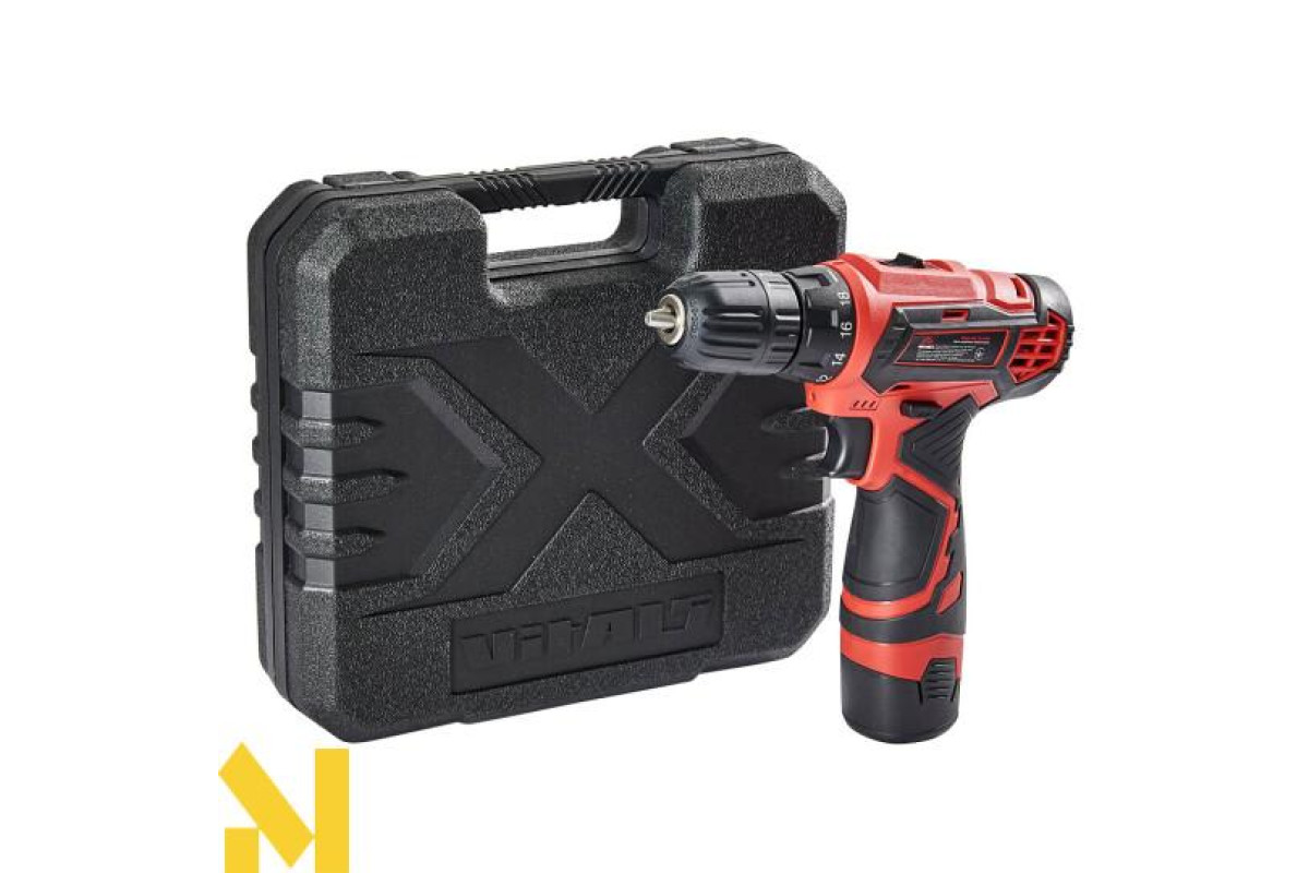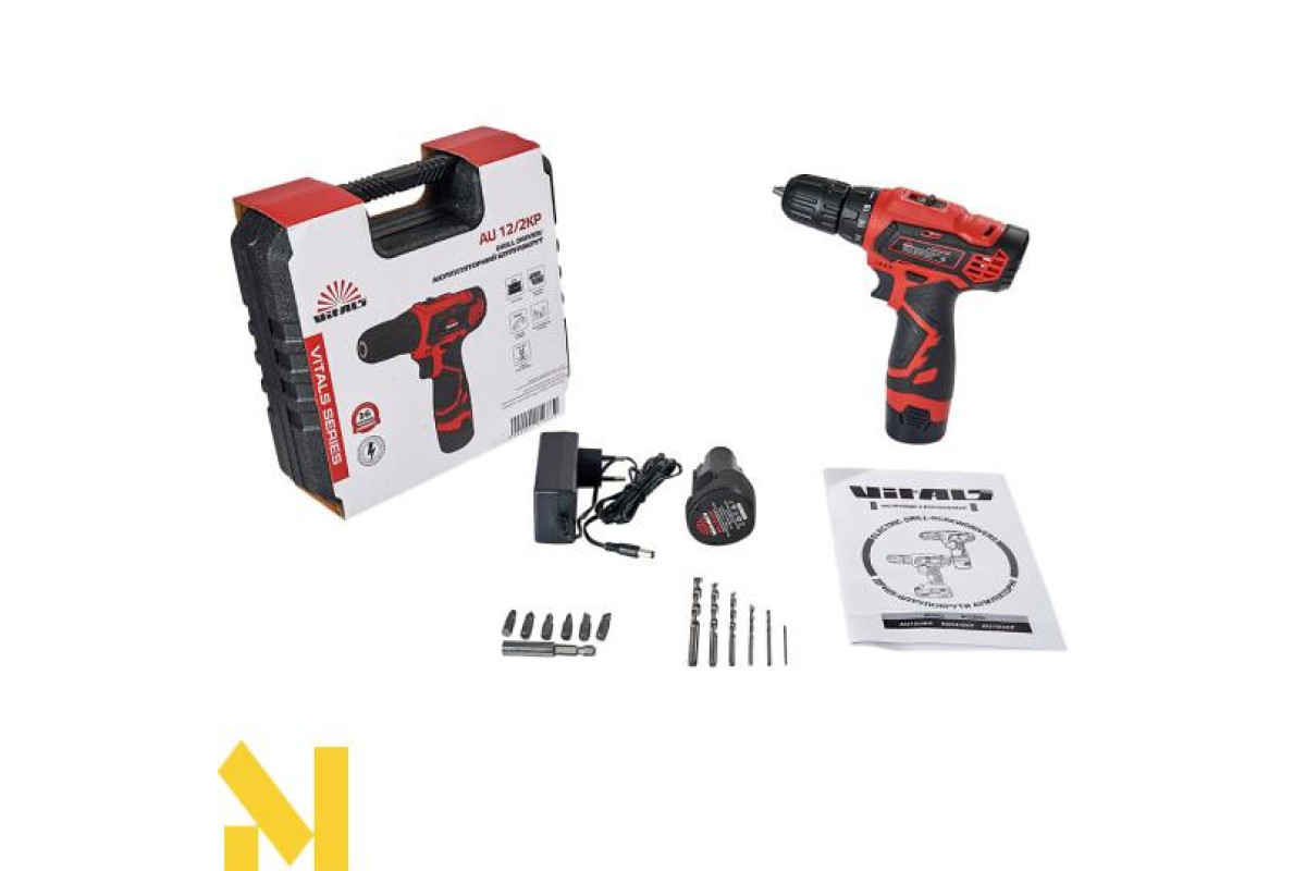 Дриль-шуруповерт акумуляторний Vitals AU 12/2KP має новий, яскравий дизайн. У комплекті постачання є 2 батареї ємністю 1500 мА∙год, а також зарядний пристрій. Дриль-шуруповерт акумуляторний Vitals AU 12/2KP постачається в міцному пластиковому кейсі для зручності транспортування та зберігання. Максимальний діаметр хвостовика оснащення, який можна зафіксувати у швидкозатискному патроні, дорівнює 10 мм. Модель має 2 швидкості обертання шпинделя. На першій швидкості досягається максимальний крутний момент у 25 Нм — для закручування кріпильних виробів. На другій швидкості досягаються високі оберти в 1400 об/хв — для свердління отворів.