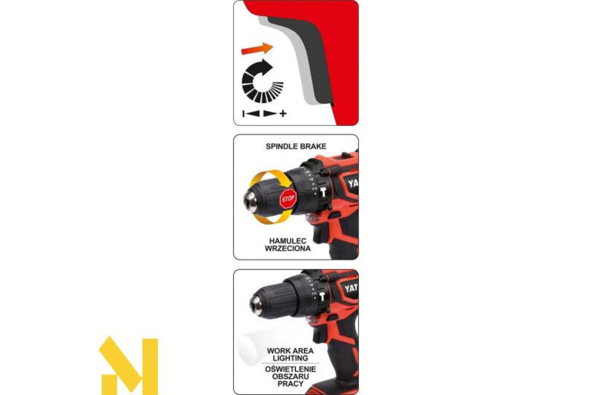 Компактний акумуляторний дриль-шуруповерт YATO YT-82783 із двигуном Mabuchi Motor Co., який гарантує довговічність високоякісних японських компонентів.