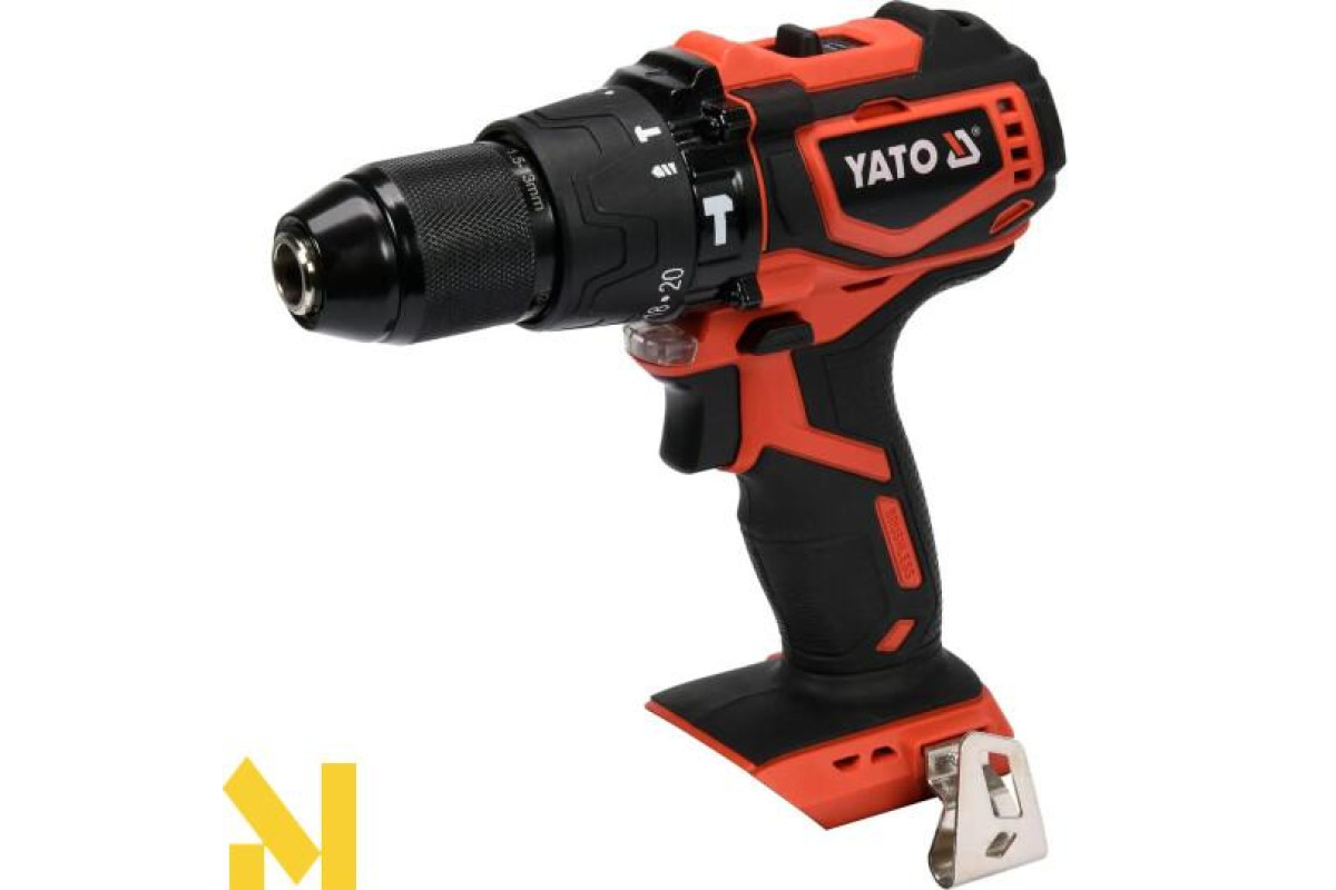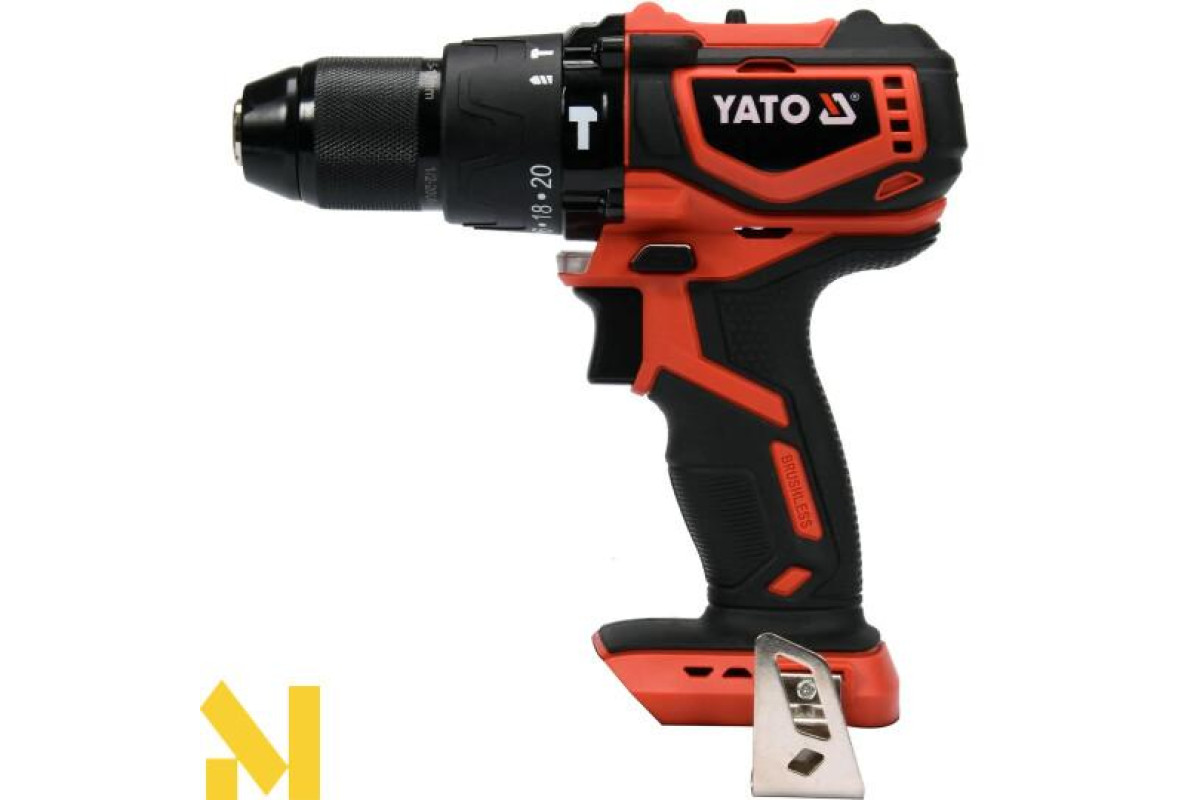 Акумуляторний ударний дриль-шуруповерт YATO YT-82797 з безщітковим двигуном, що генерує високу швидкість обертання валу.