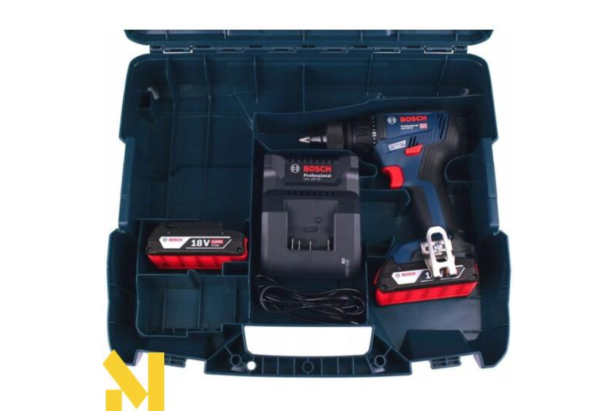 Акумуляторний шуруповерт Bosch GSR 18V-50 (1x2Ah; 1x5Ah) комплектується двома акумуляторами по 2 Ач і 5 Ач, завдяки чому інструмент можна експлуатувати набагато довший час без необхідності підзарядки.