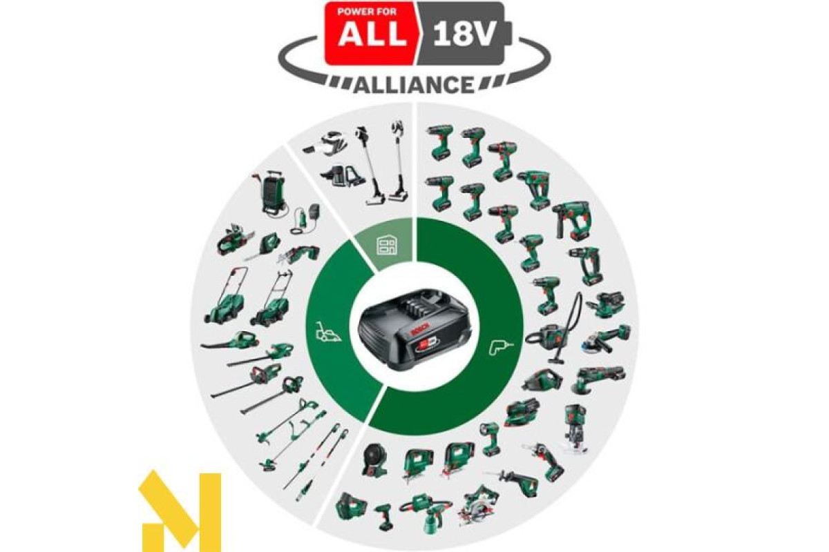 Інструмент відноситься до системи POWER FOR ALL ALLIANCE, де один акумулятор напругою 18V сумісний з різними інструментами різних виробників.