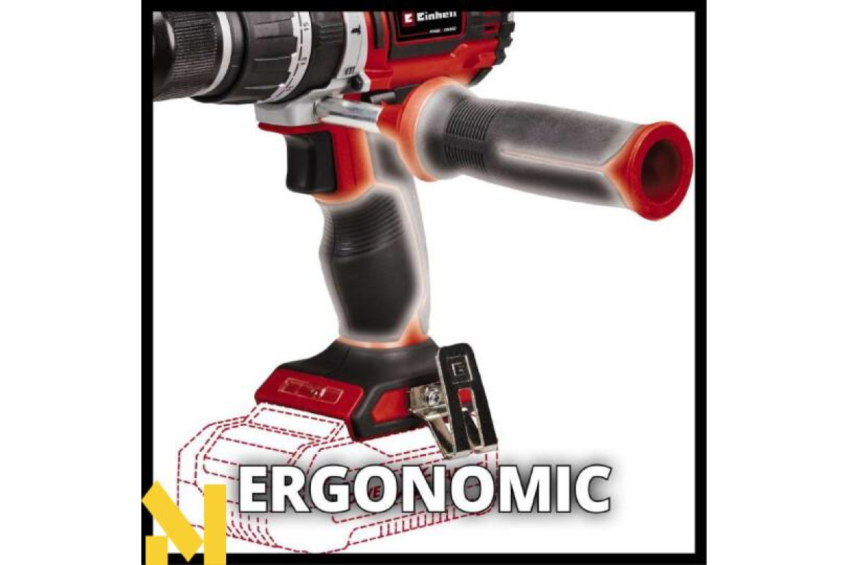 Акумуляторна ударна дриль-шуруповерт Einhell TP-CD 18/60 Li-i Brushless - Solo серії Professional призначений для робіт по дереву, металу, пластику, каменю і цегляних стінах: для свердління невеликих отворів і загвинчування / вигвинчування відповідних кріпильних елементів як вдома, так і в майстерні. Einhell TP-CD 18/60 Li-i Brushless - Solo має безщітковий двигун для кращої продуктивності і продовження часу в порівнянні зі звичайними двигунами з вугільними щітками. У безщіткового акумуляторного шуруповерта відсутній будь-який знос від механічного тертя. Акумулятори для всіх інструментів серії Power X-Change також можуть бути використані для роботи з Einhell TP-CD 18/60 Li BL - Solo. Наявність Led підсвічування робочої зони дозволяє працювати в мало освітлених місцях. Міцний, довговічний 2-х швидкісний металевий редуктор і потужний Безщітковий двигун з високим крутним моментом, забезпечують достатню потужність для загвинчування і високошвидкісного свердління, а також свердління з ударом. 21-позиційна муфта забезпечує високу точність загвинчування з максимальним затягуючим моментом 60 Нм + 1 установка для свердління + 1 свердління з ударом. Електронний курок дрилі-шуруповерта Einhell TP-CD 18/60 Li BL - Solo дозволяє регулювати оберти двигуна в залежності від ступеня натискання. Завдяки ергономічному дизайну, прогумованій м'якій рукоятці і додатковій рукоятці, яка зменшує фізичне навантаження на користувача, інструмент зручно лежить в руці, дозволяючи працювати легко, не відчуваючи втоми. Інструмент поставляється без акумулятора і зарядного пристрою, але він може бути приведений в дію за допомогою Power X-Change акумулятора.