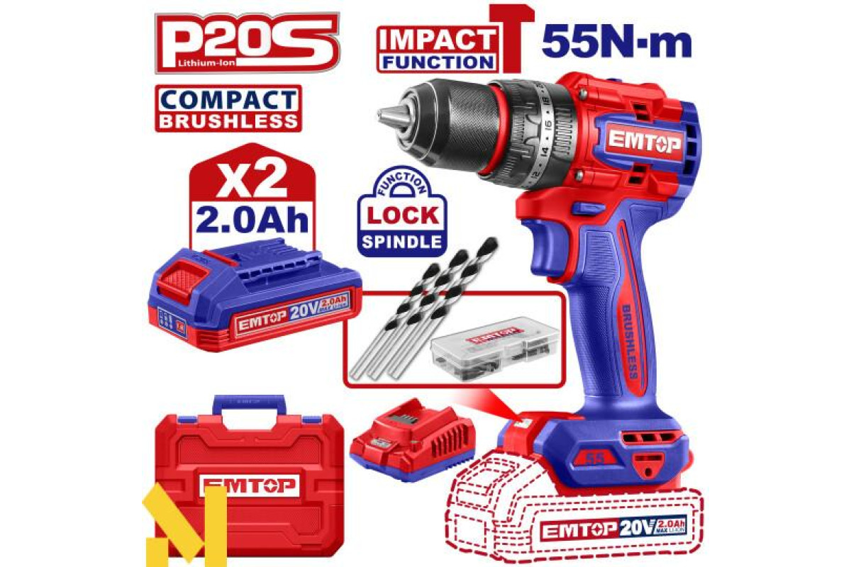 Дриль-шуруповерт ударний акумуляторний Emtop ECIDL20558: потужний інструмент для складних робіт