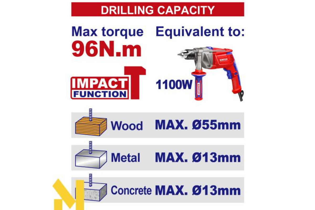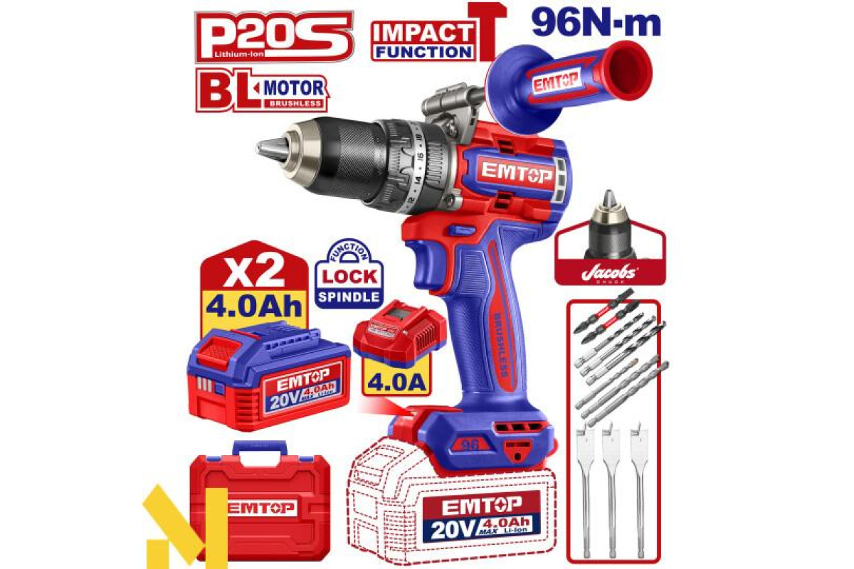 Дриль-шуруповерт ударний акумуляторний EMTOP ECIDL209686